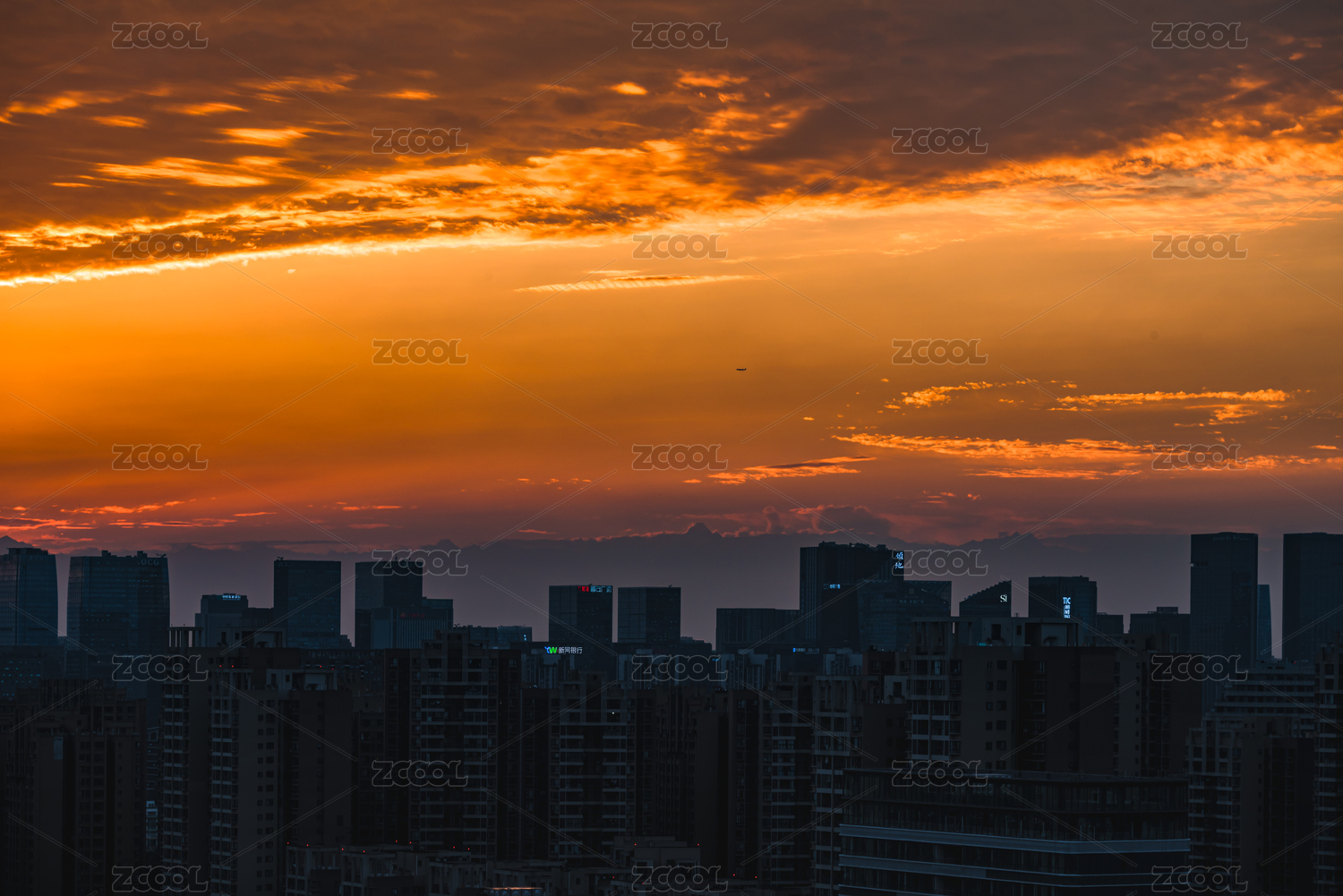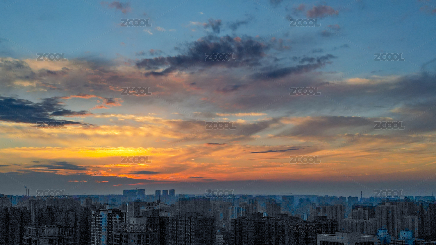 城市上空落日晚霞