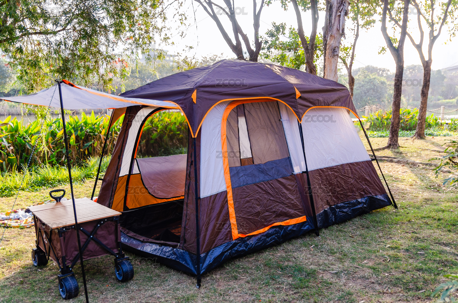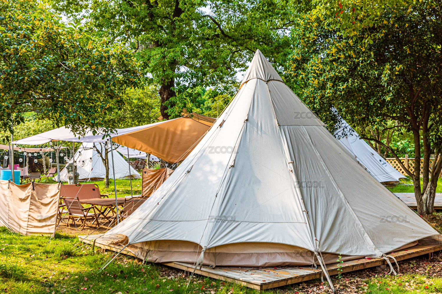 夏季武汉梨园景区内在草坪上搭帐篷露营
