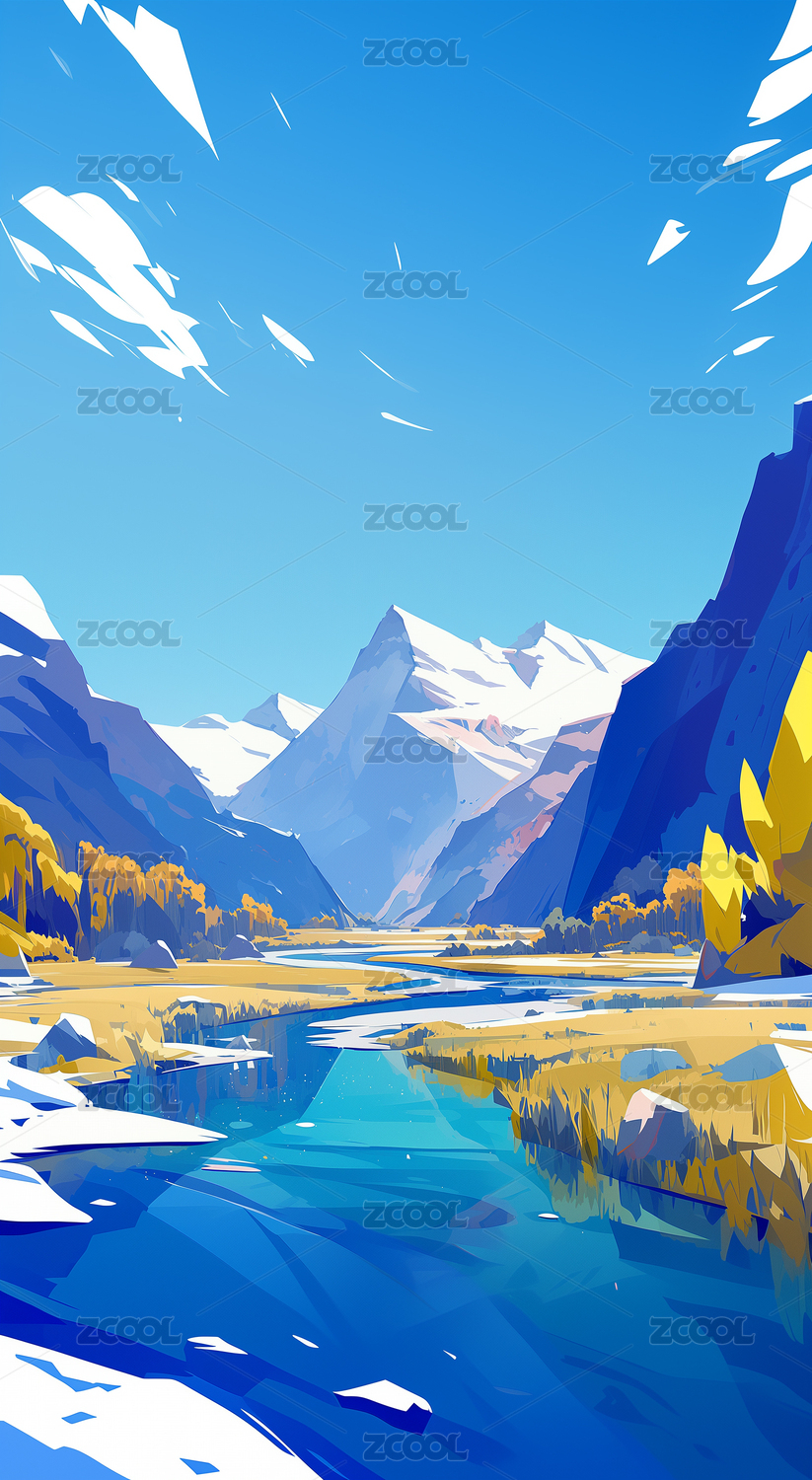 山谷清流与雪山