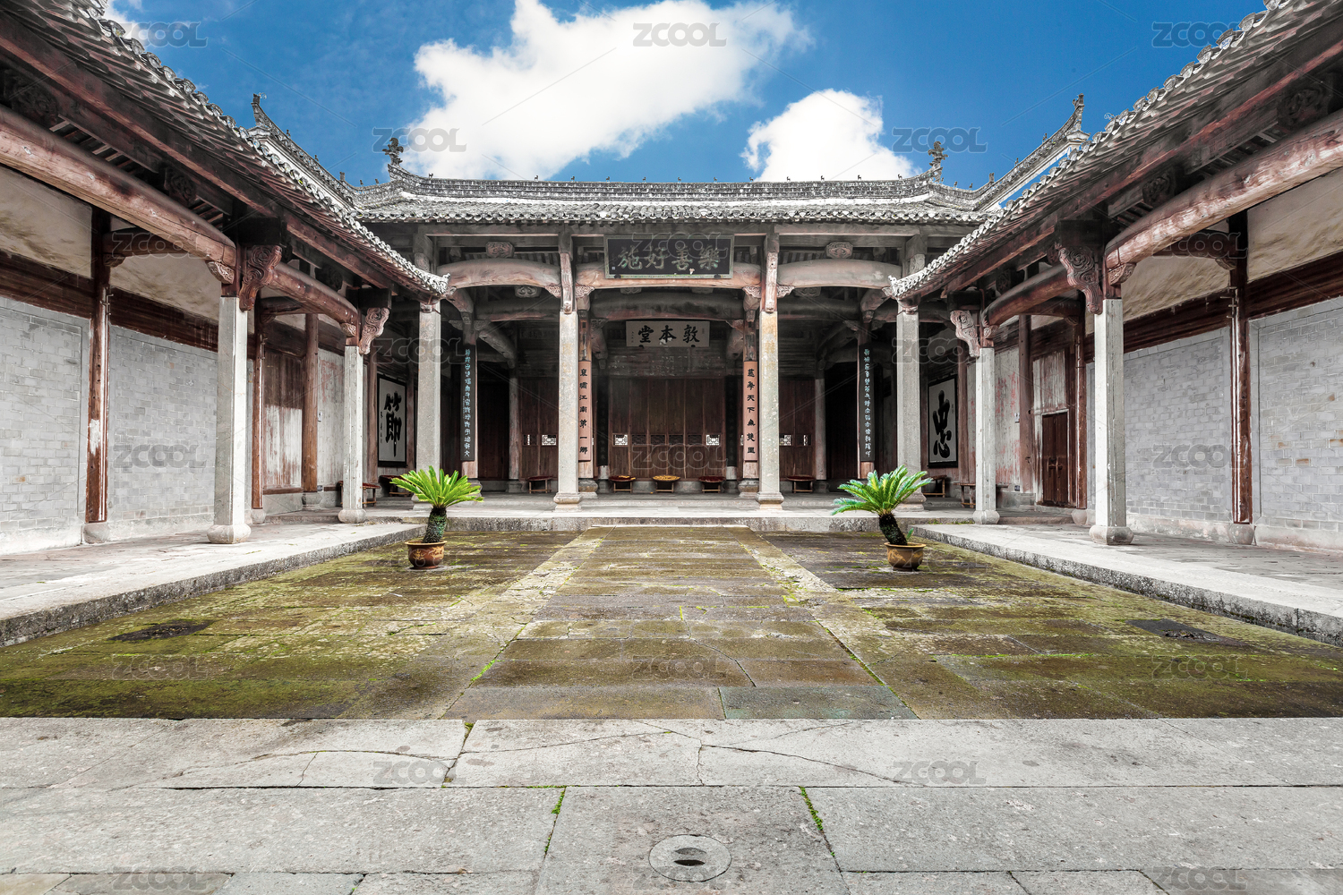 中国安徽省歙县棠樾古村敦本堂徽派祠堂