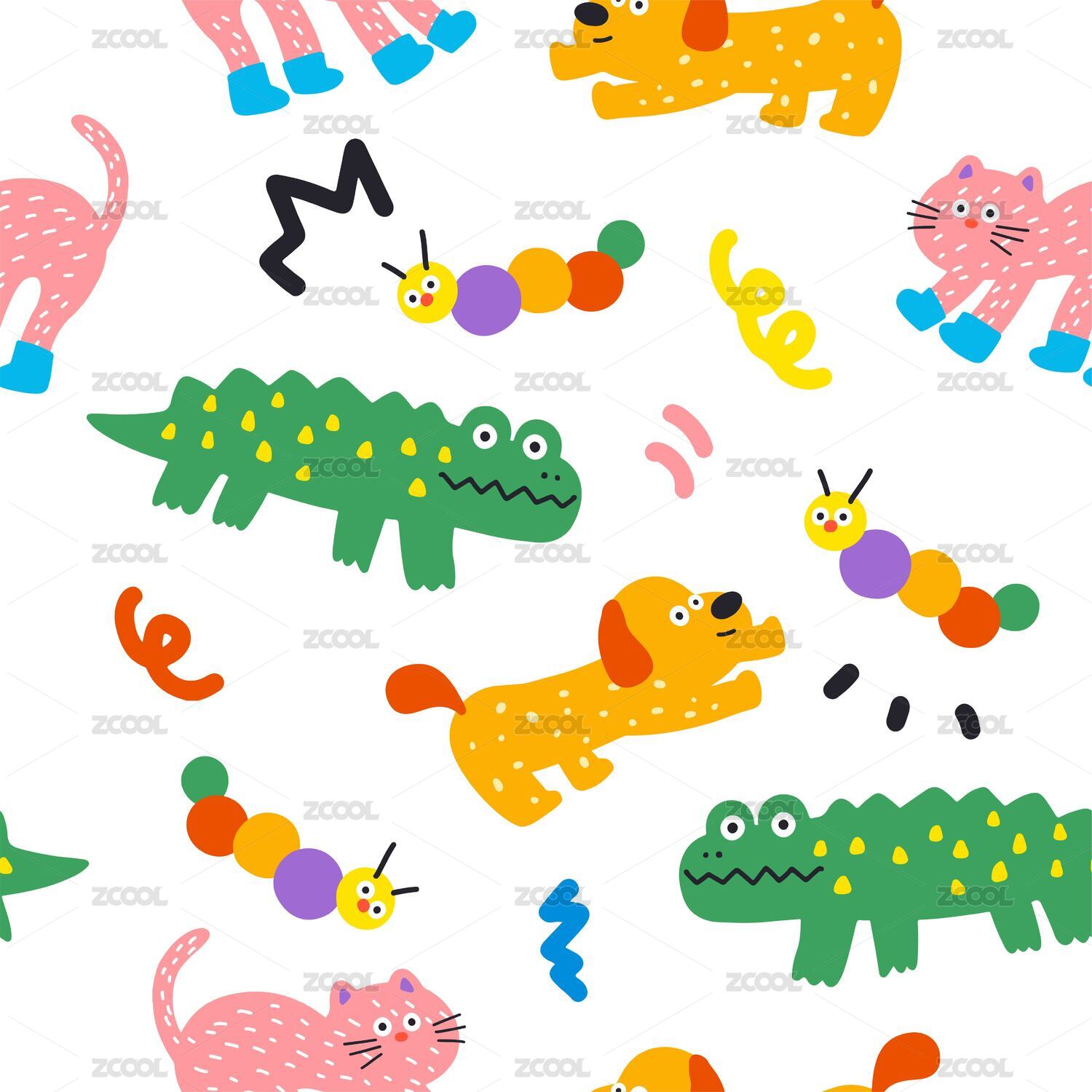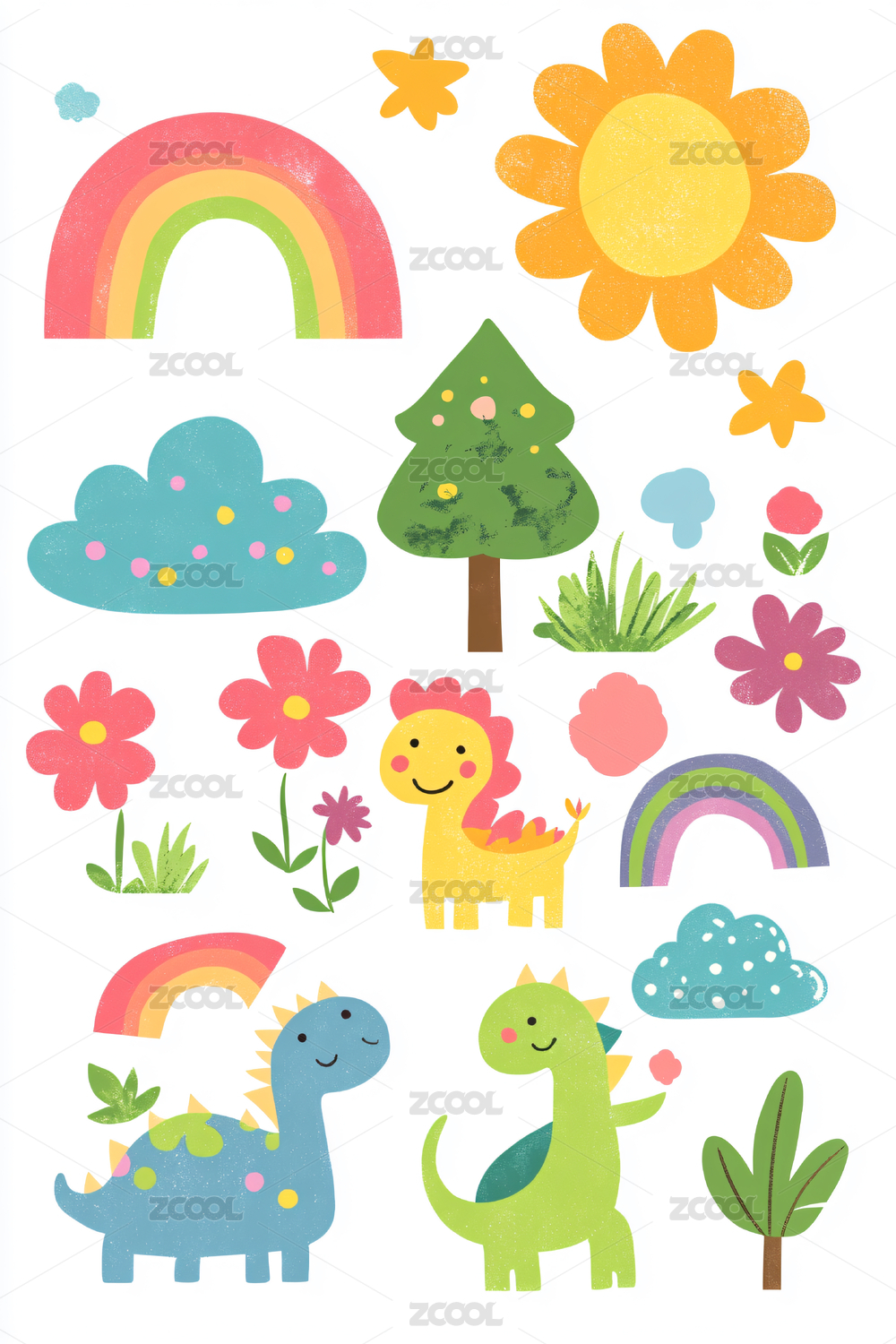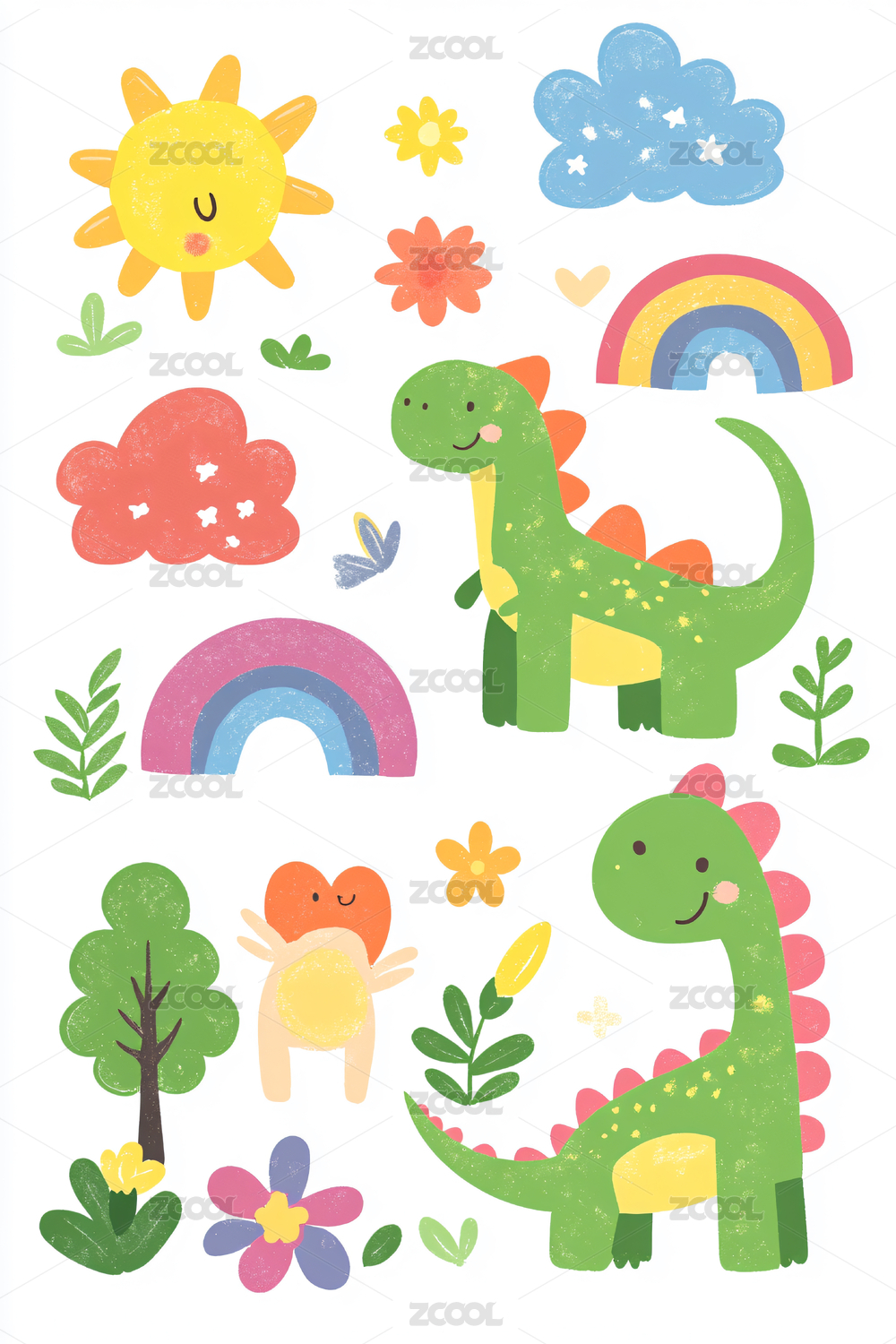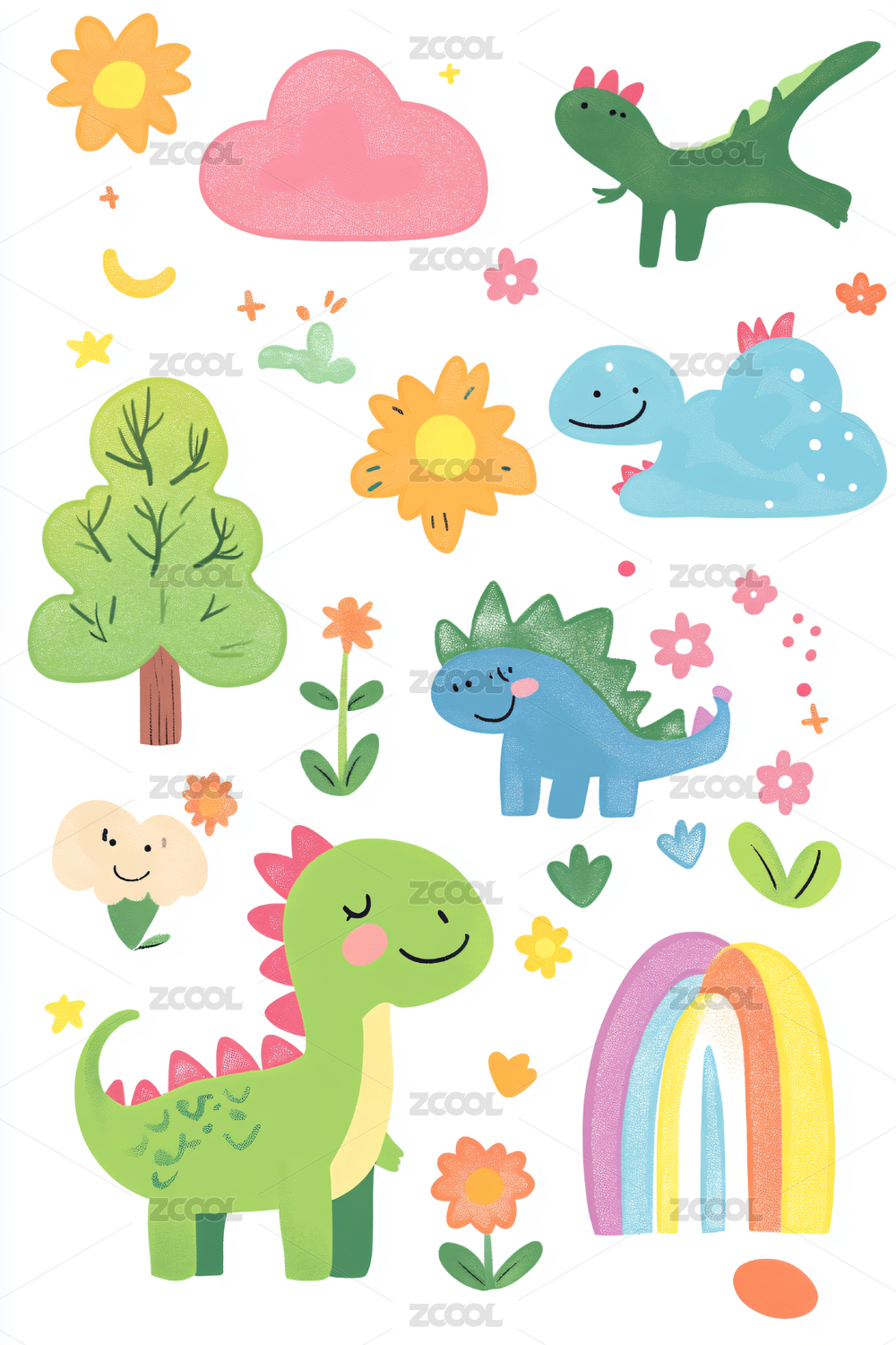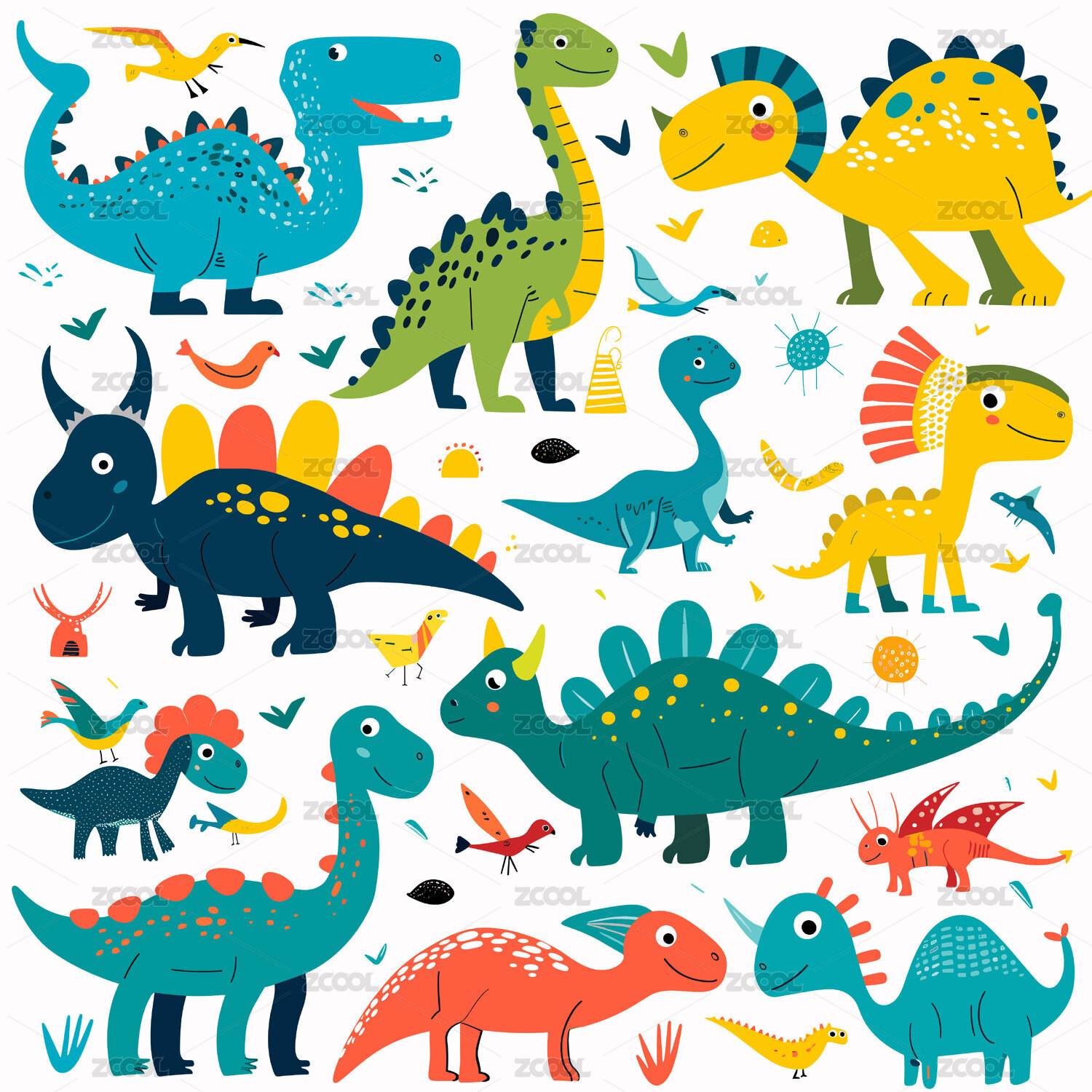 扁平化,卡通,动物,可爱,小鸡,长颈鹿,企鹅,大象,恐龙