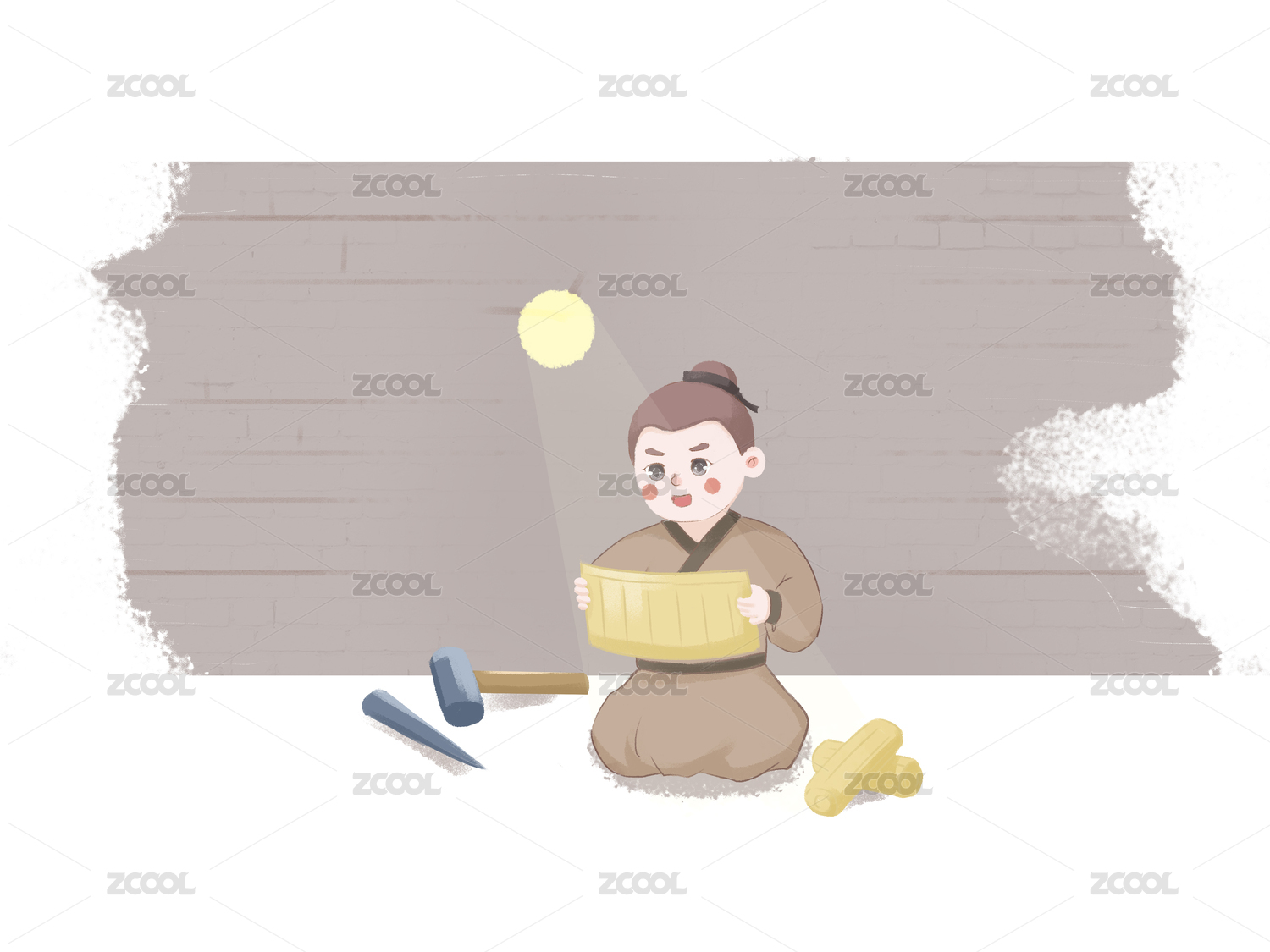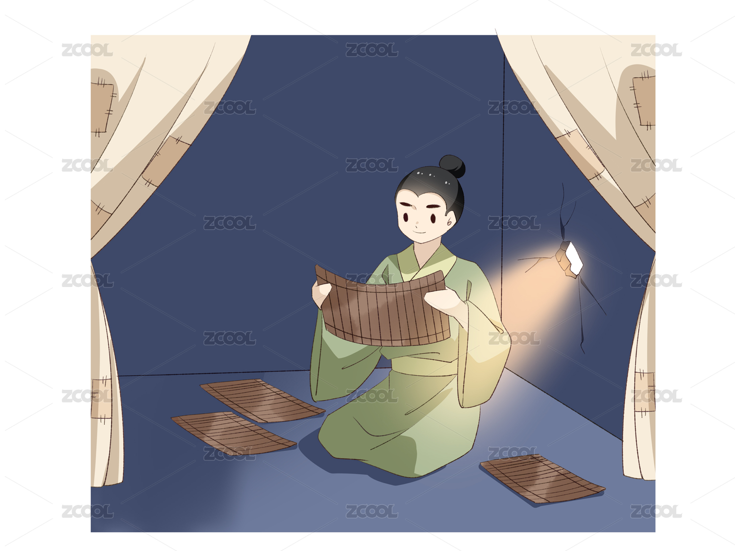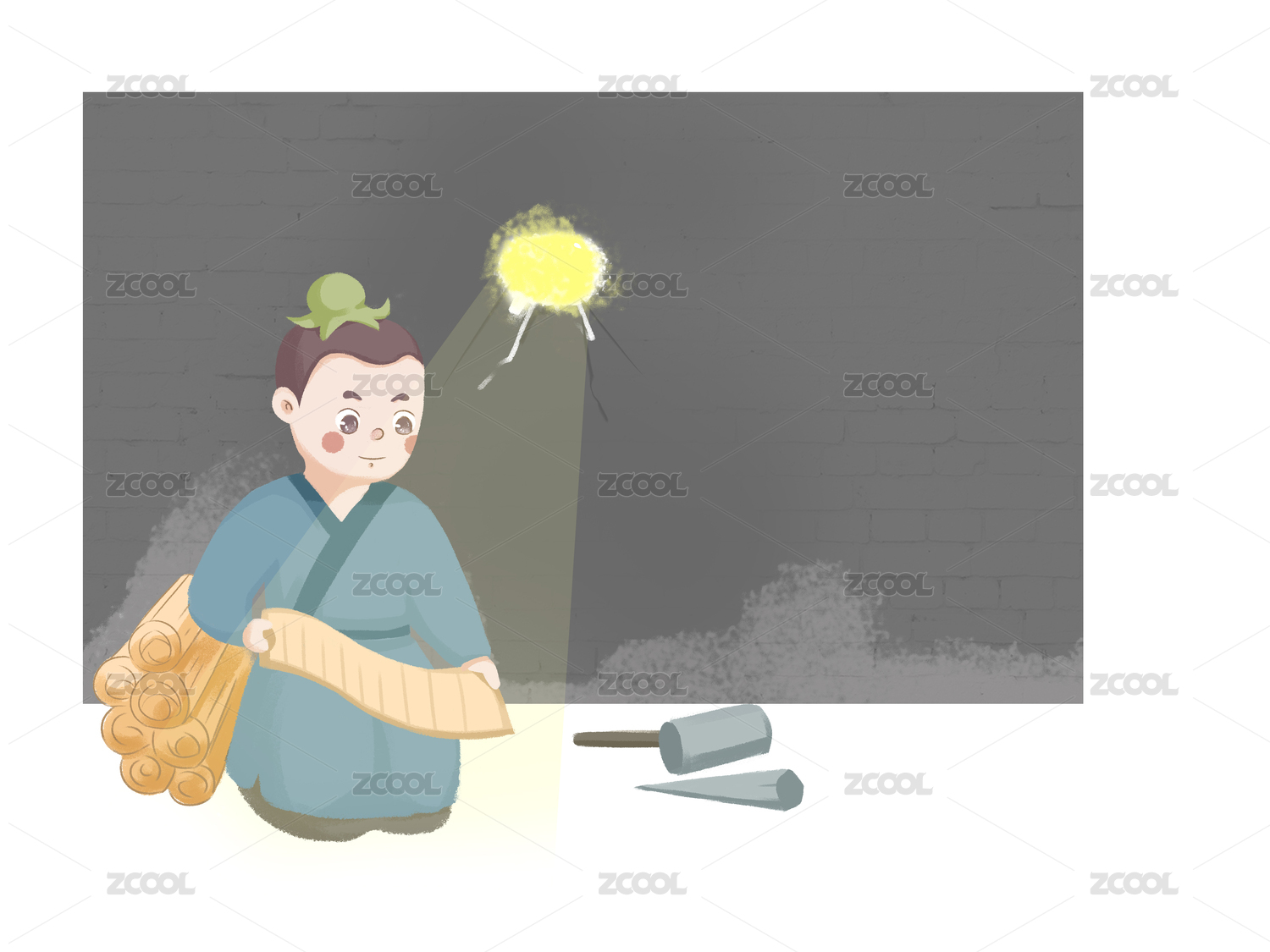 棕色成语青衣男子凿壁偷光读书元素 拷