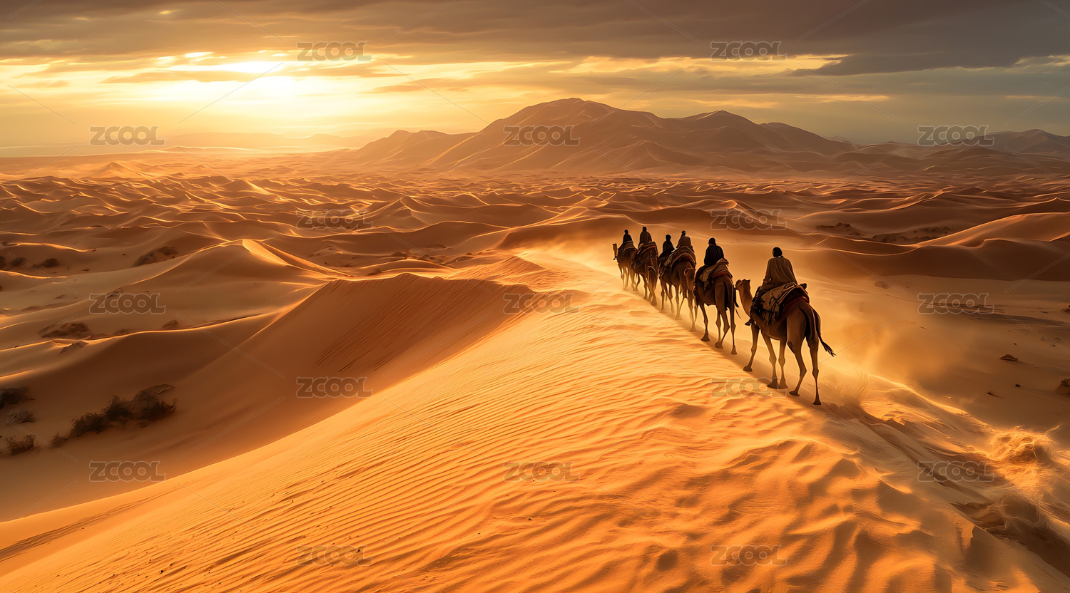 沙漠,骆驼,旅行者,旅人,沙丘,沙尘,金色,云,山,背景