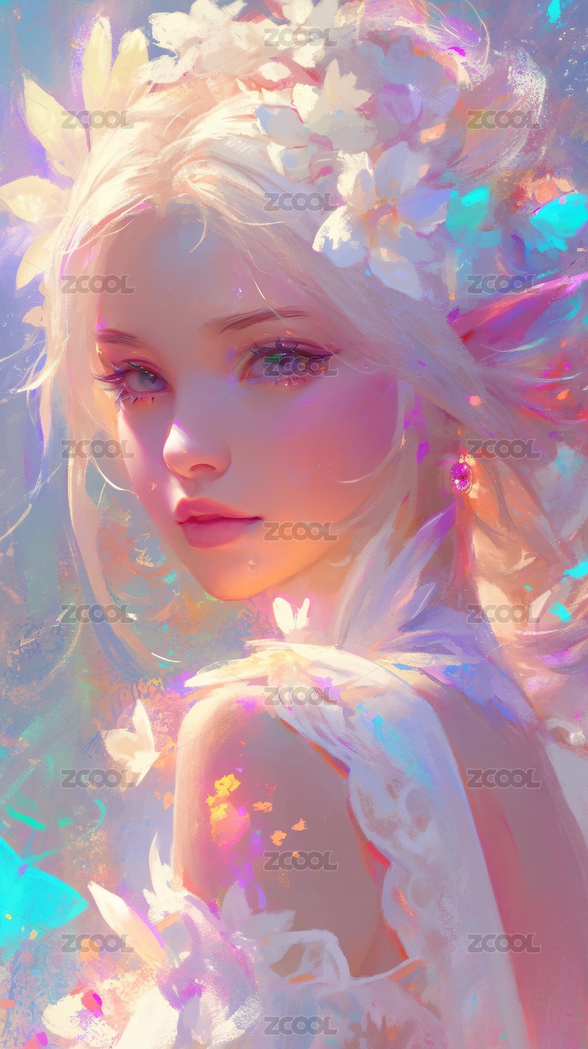 白发玫瑰女孩浪漫唯美动漫海报油画壁纸