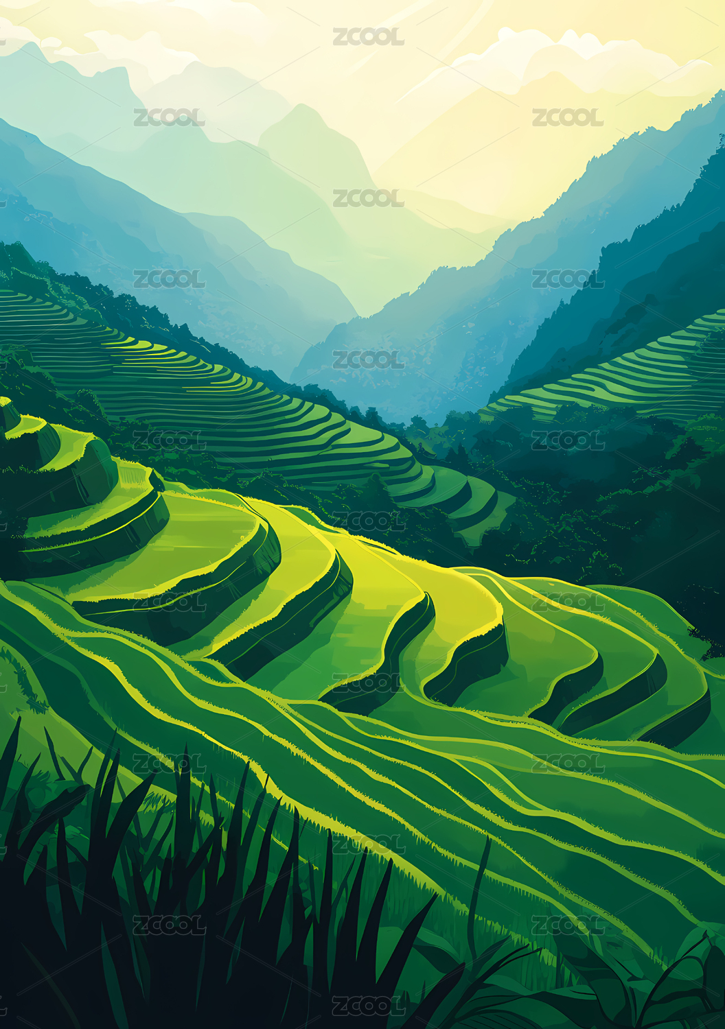白昼,插画,大自然,地形,丰收,风景,高视角,麦浪,麦穗,麦田