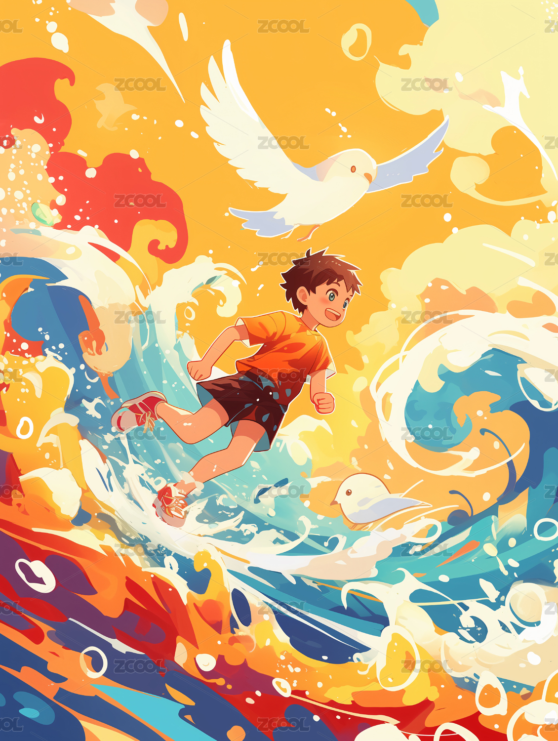 插画,儿童插画,封面,绘本,儿童,书面,天空,蓝天,白云,少女