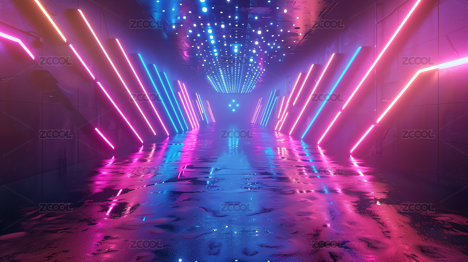 彩色灯光下的空间