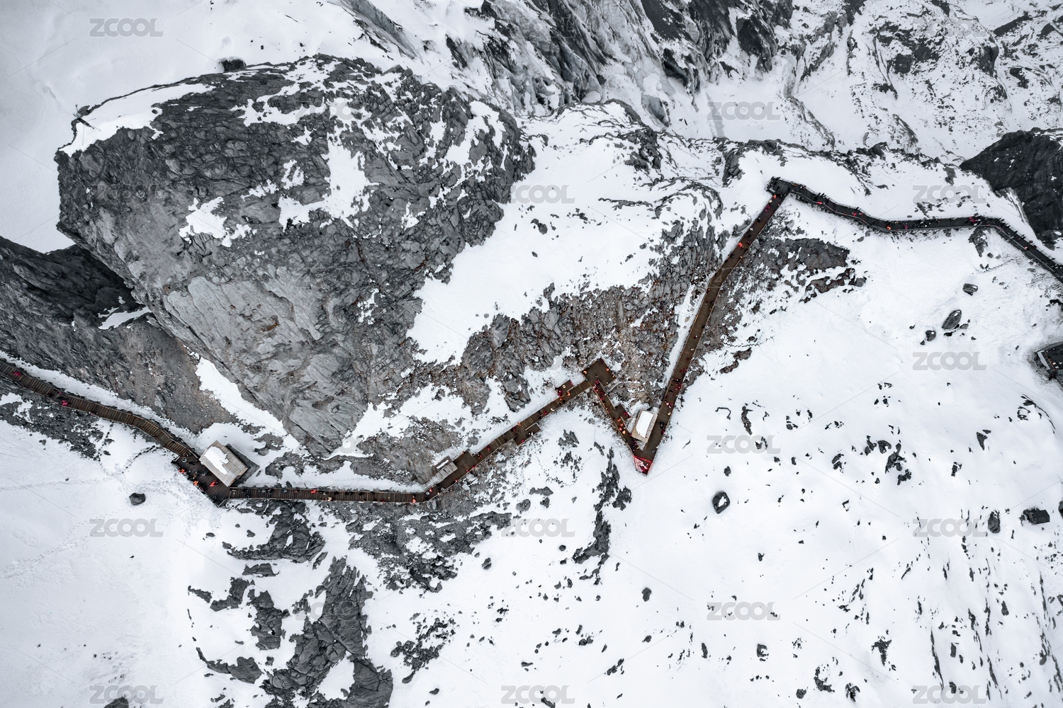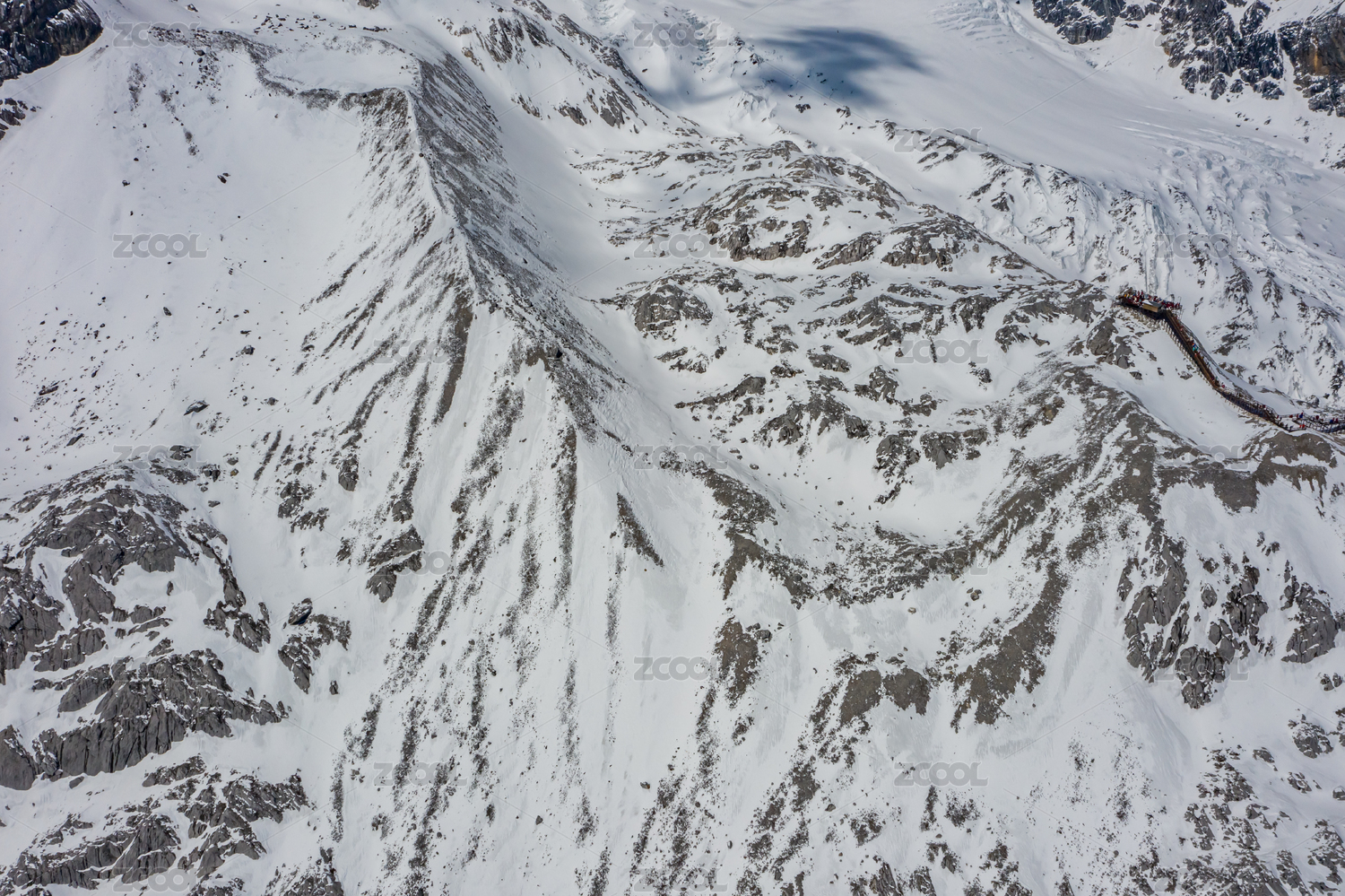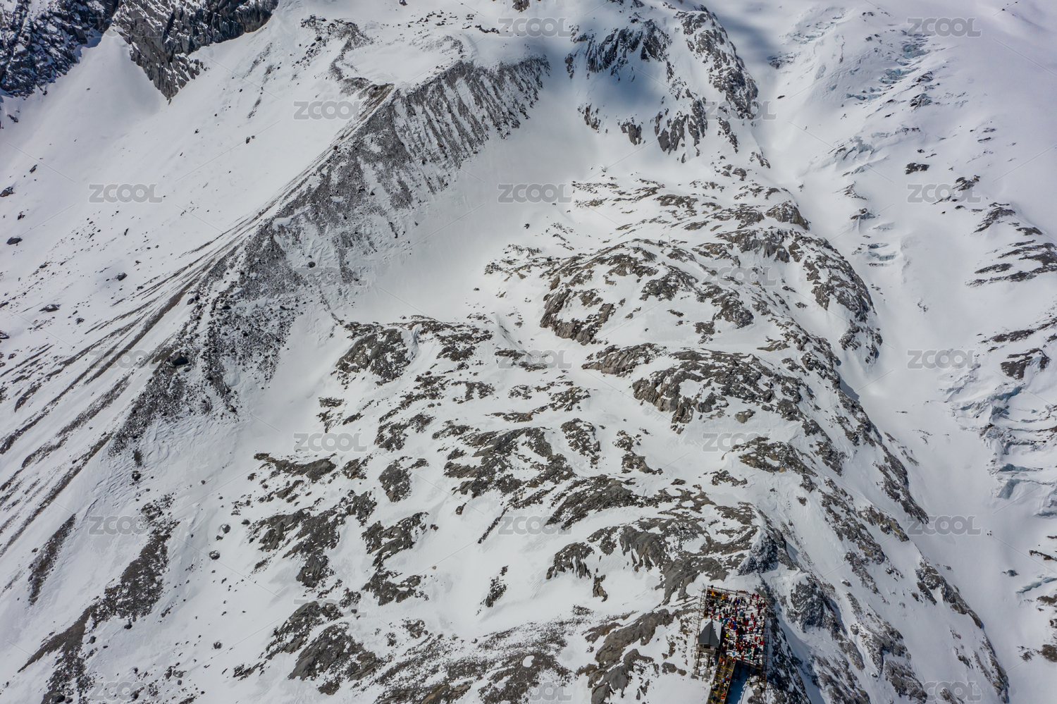 航拍云南丽江玉龙雪山主峰扇子陡冰川公园