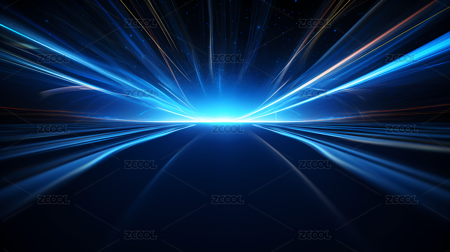 带有蓝线和灯光的未来抽象背景,带有光线的