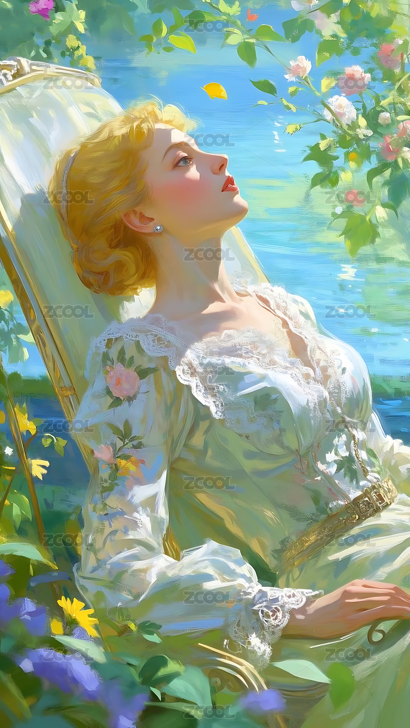 莫奈,天使,莫奈花园,十字绣,插画,自然,文艺,荷花池,睡莲