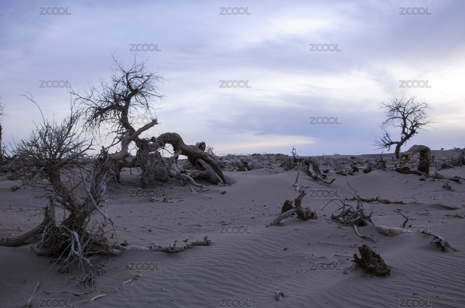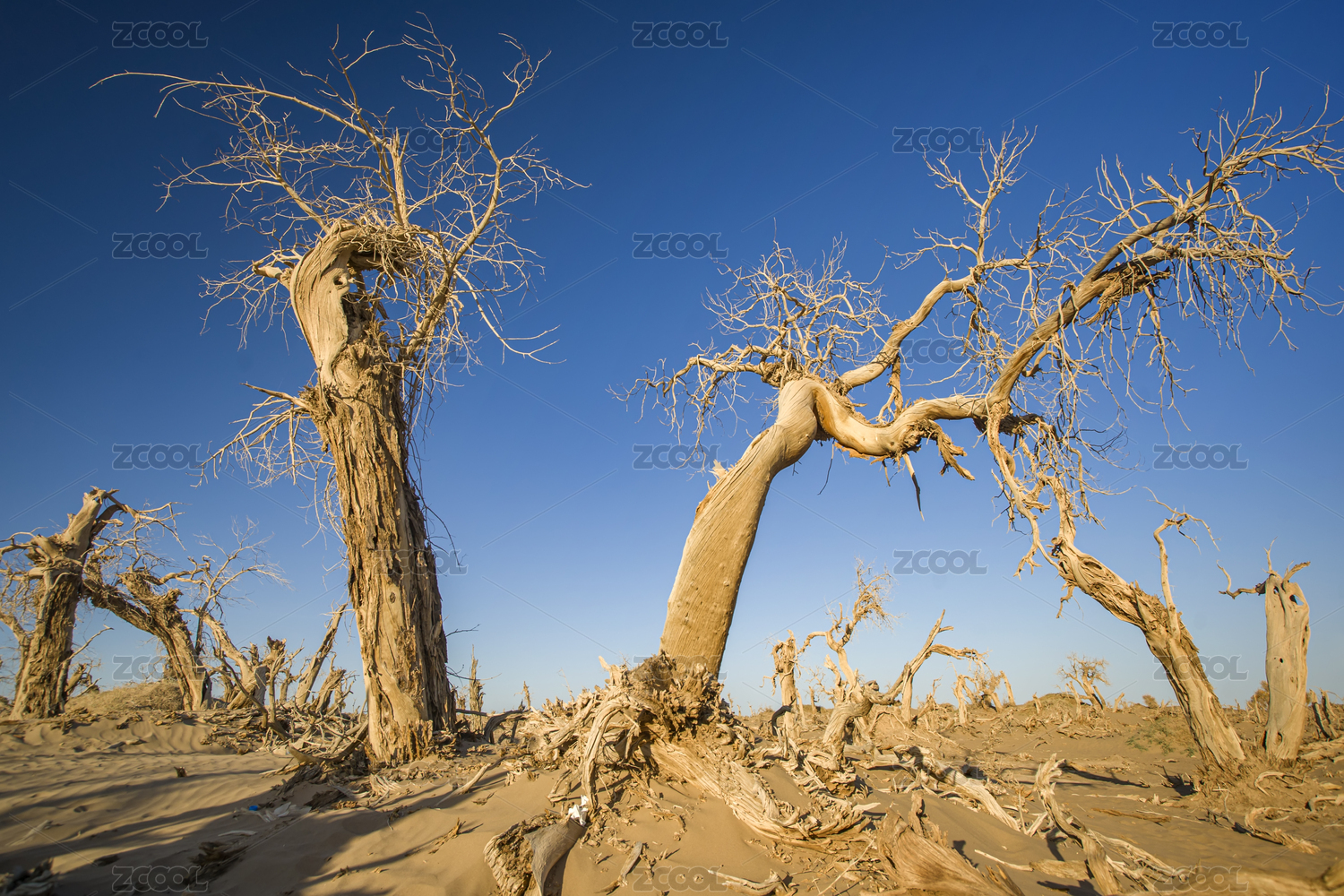 内蒙额济纳旗暮色中枯死的胡杨林