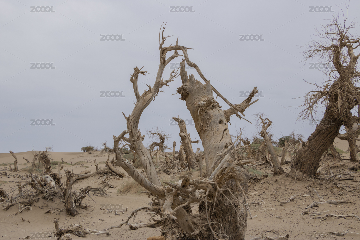 中国内蒙古额济纳旗凄凉的怪树林中枯萎的胡杨