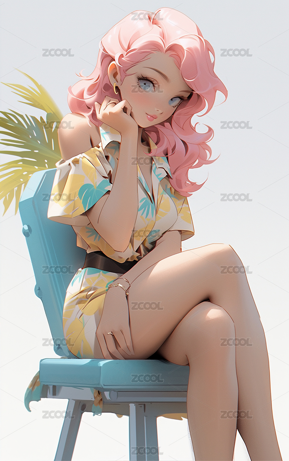 手绘卡通穿着夏日清凉衣服的漂亮女孩插画