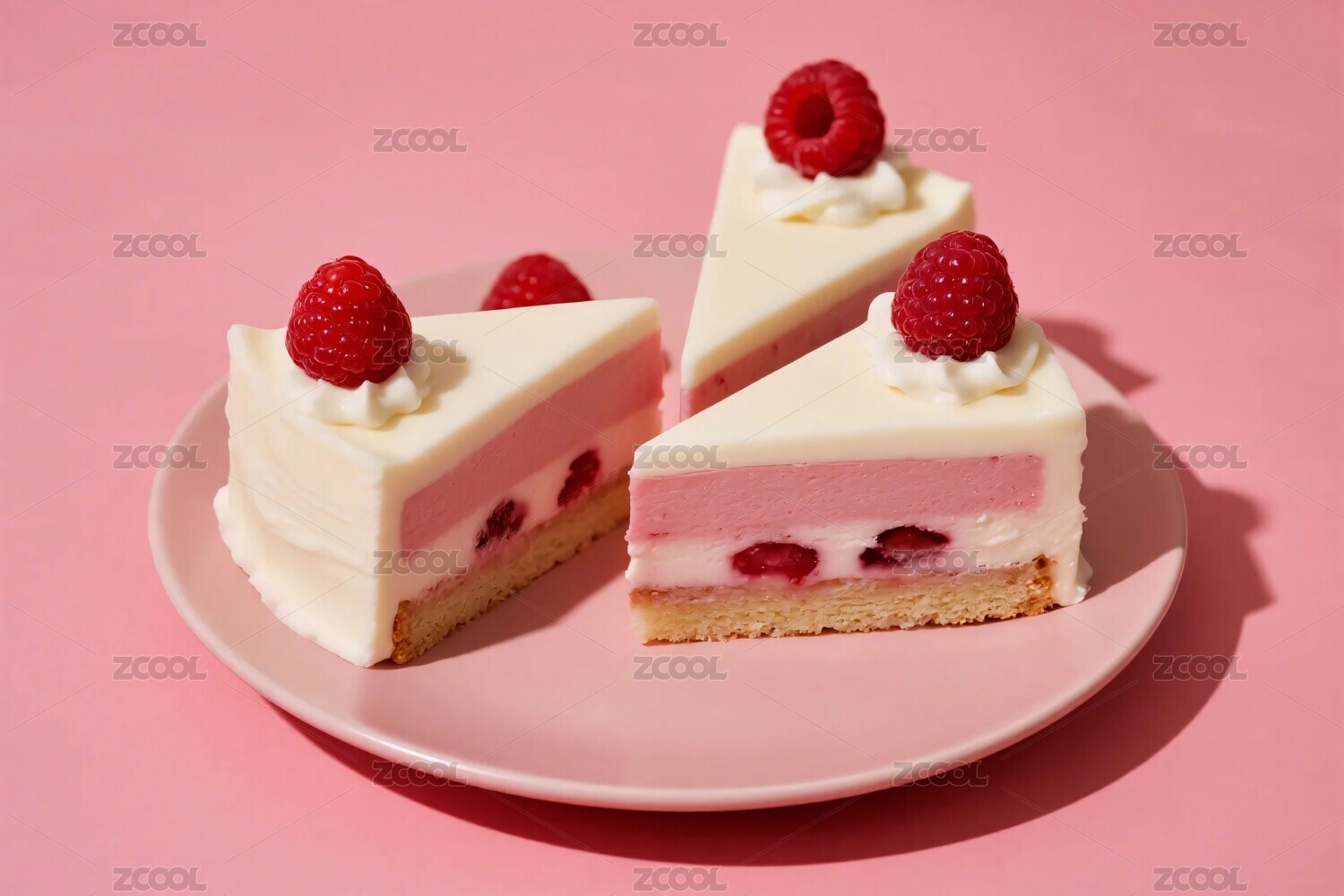 三块树莓奶油蛋糕