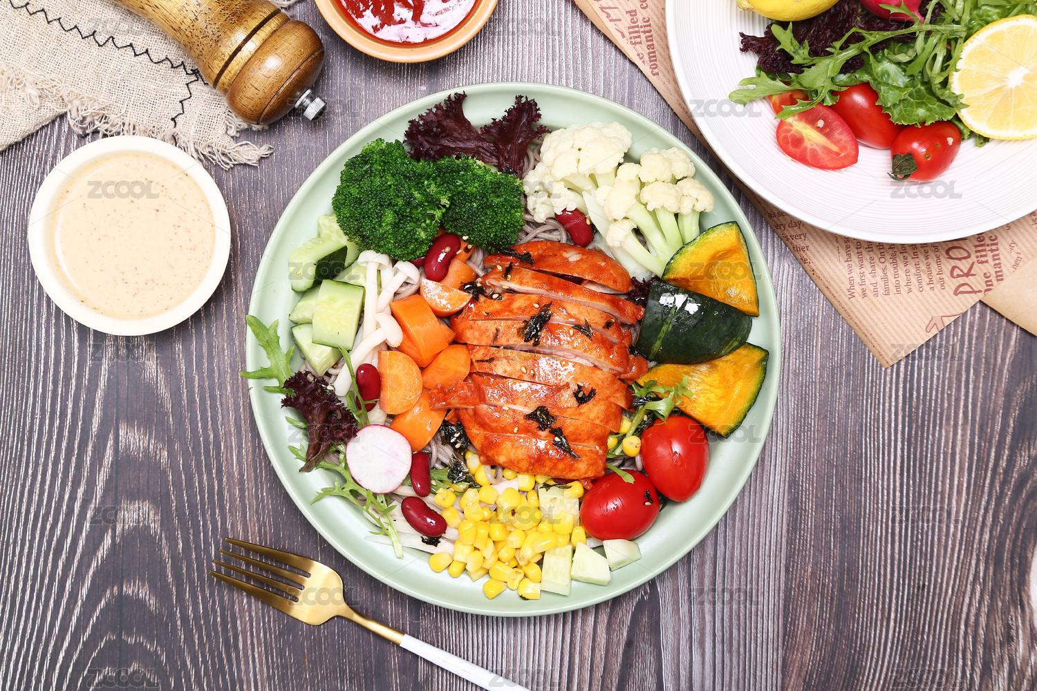 美味的奥尔良鸡胸肉蔬菜沙拉