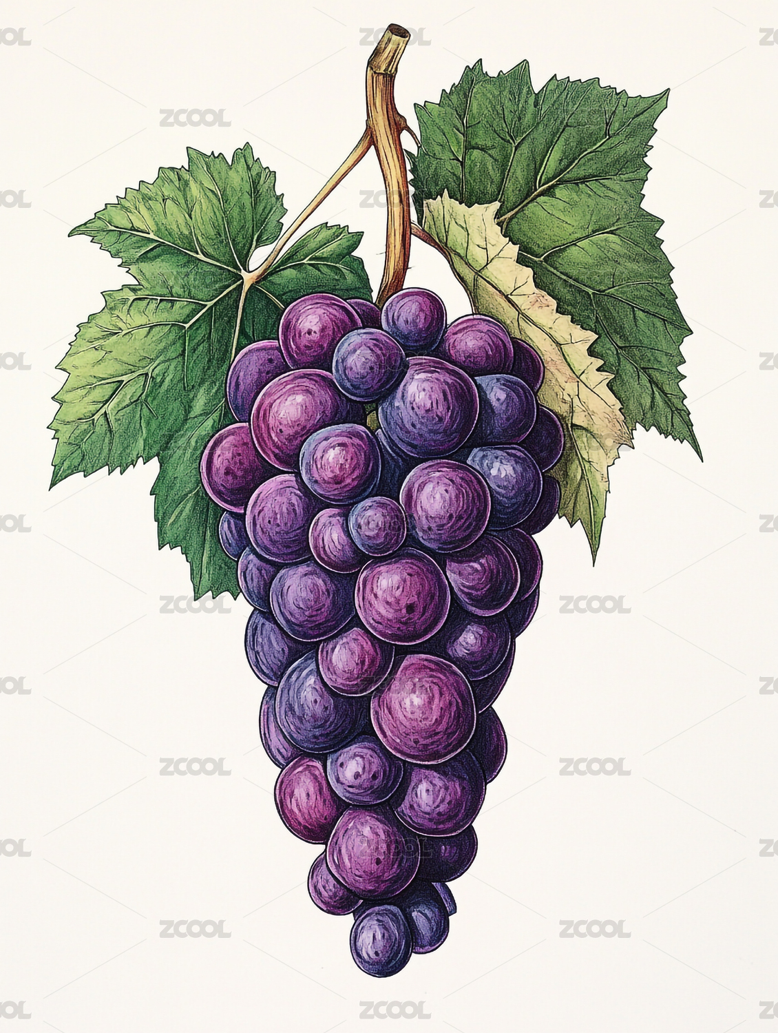 水彩,插画,手绘,元素,果片,装饰,图案,印花,葡萄,紫葡萄