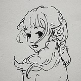 女孩提着花篮轻嗅花香鸽子在旁飞起竖版插画