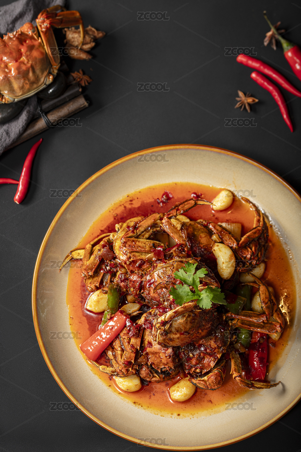 黑色砂锅装的砂锅蒜香鸡摆放在樟木砧板上