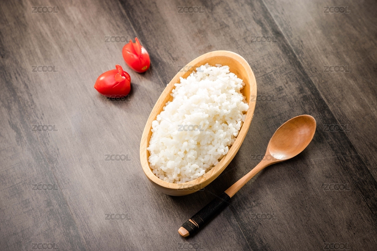 棕色桌面,木碗,米饭套餐,木勺子,米饭,大米饭,白米,船型木碗