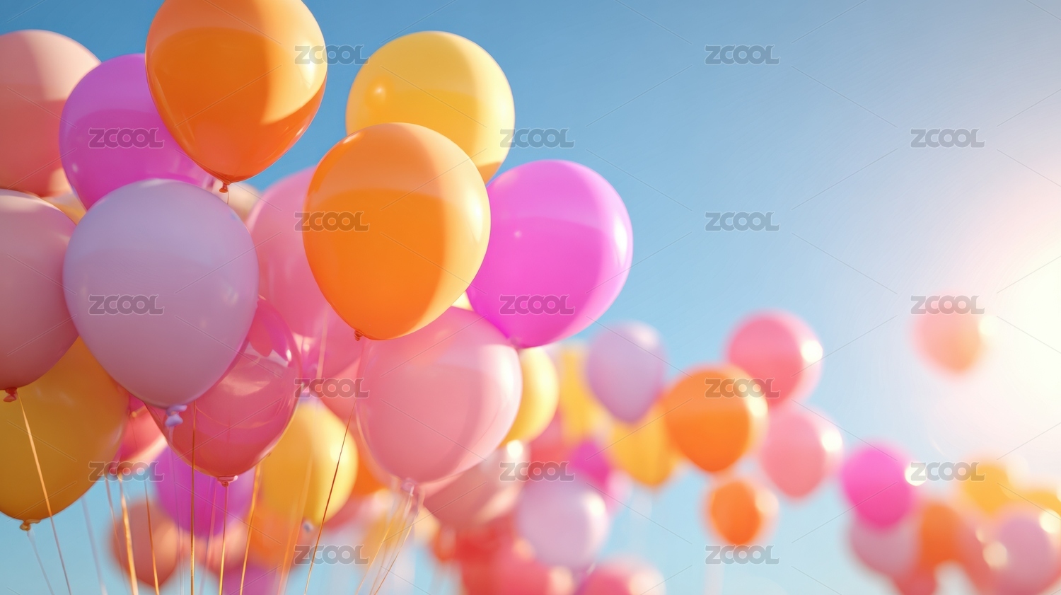 夏天,气球,草地,天空,儿童节,自然,季节,清新,草原,色彩鲜艳