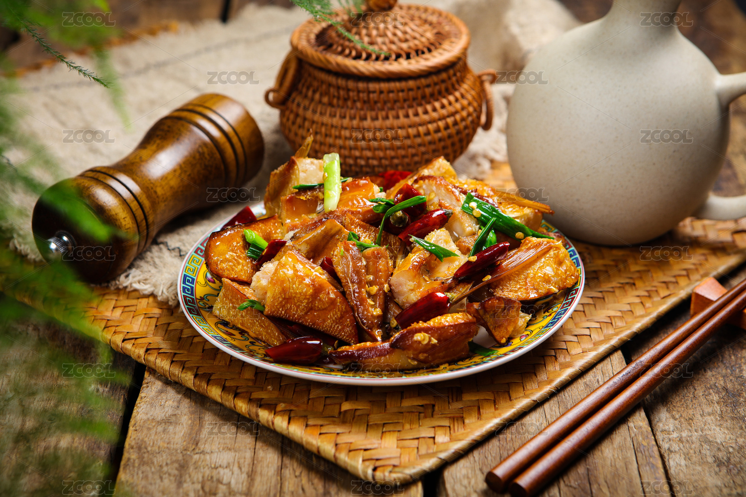美味特色中国菜烟熏腊鱼肚