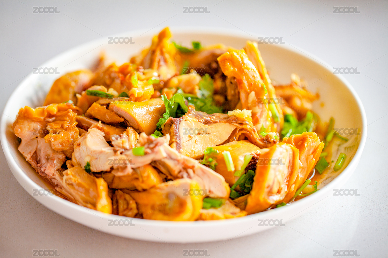 桌面上盘子里的美味可口的手撕鸡