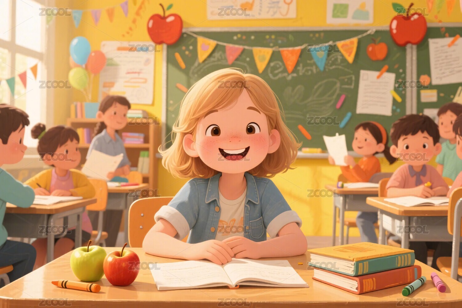 教室里的卡通女孩