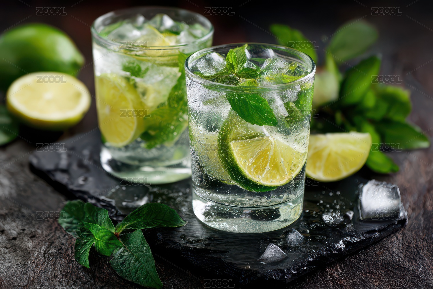 黑色背景,柠檬,苏打水,饮料,莫吉托,鸡尾酒,冰块,夏季,饮品,薄荷