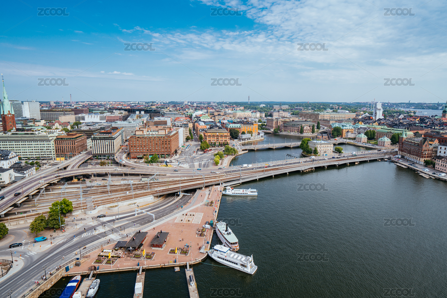 俯瞰瑞典首都斯德哥尔摩城市天际线全景风光