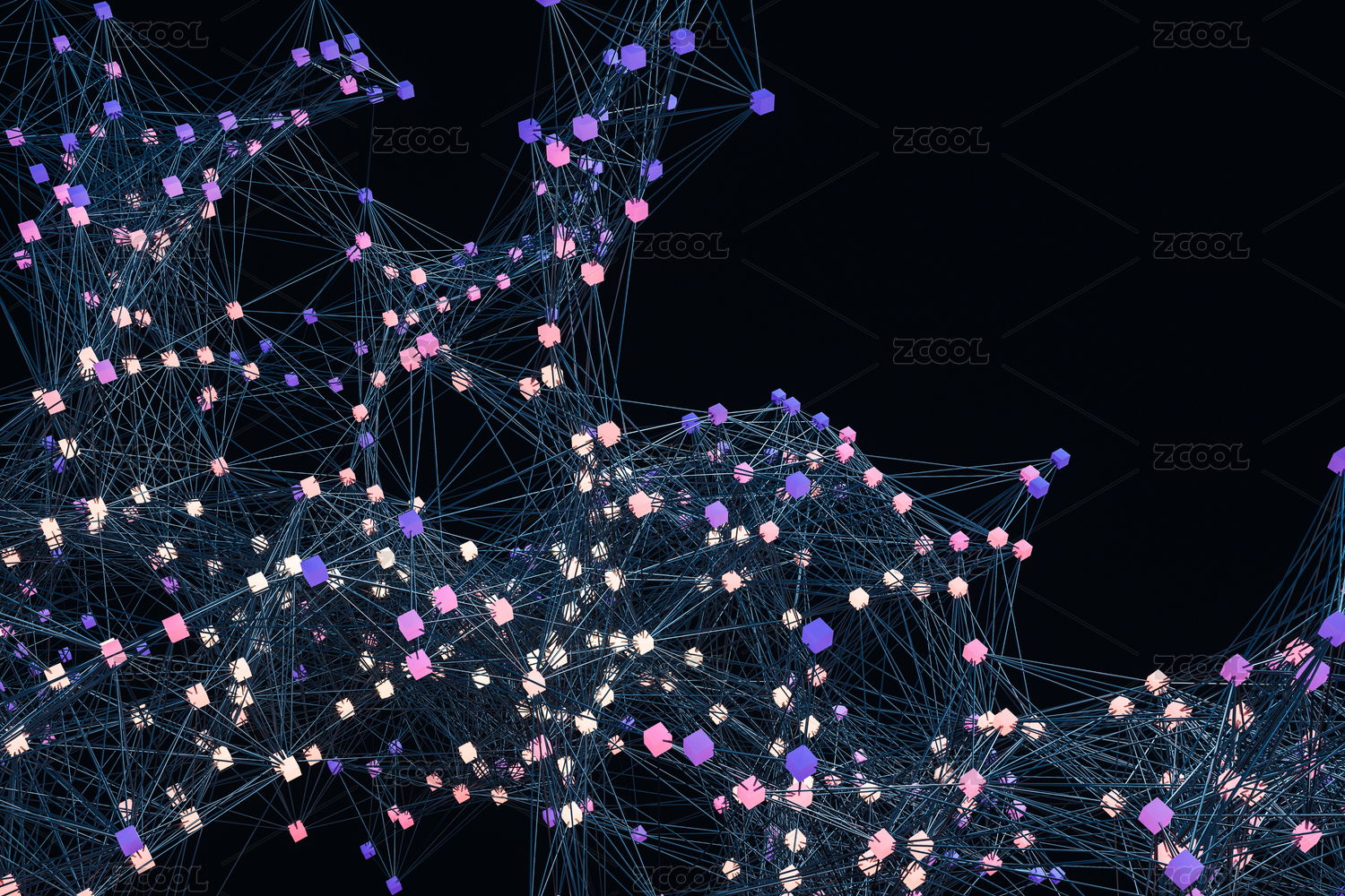 发光的结点与科技感发散线条,三维渲染