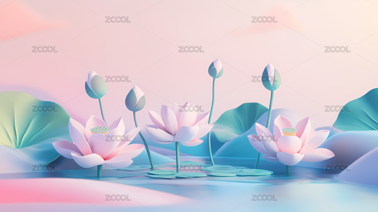 小暑节气的莲花三维渲染插图