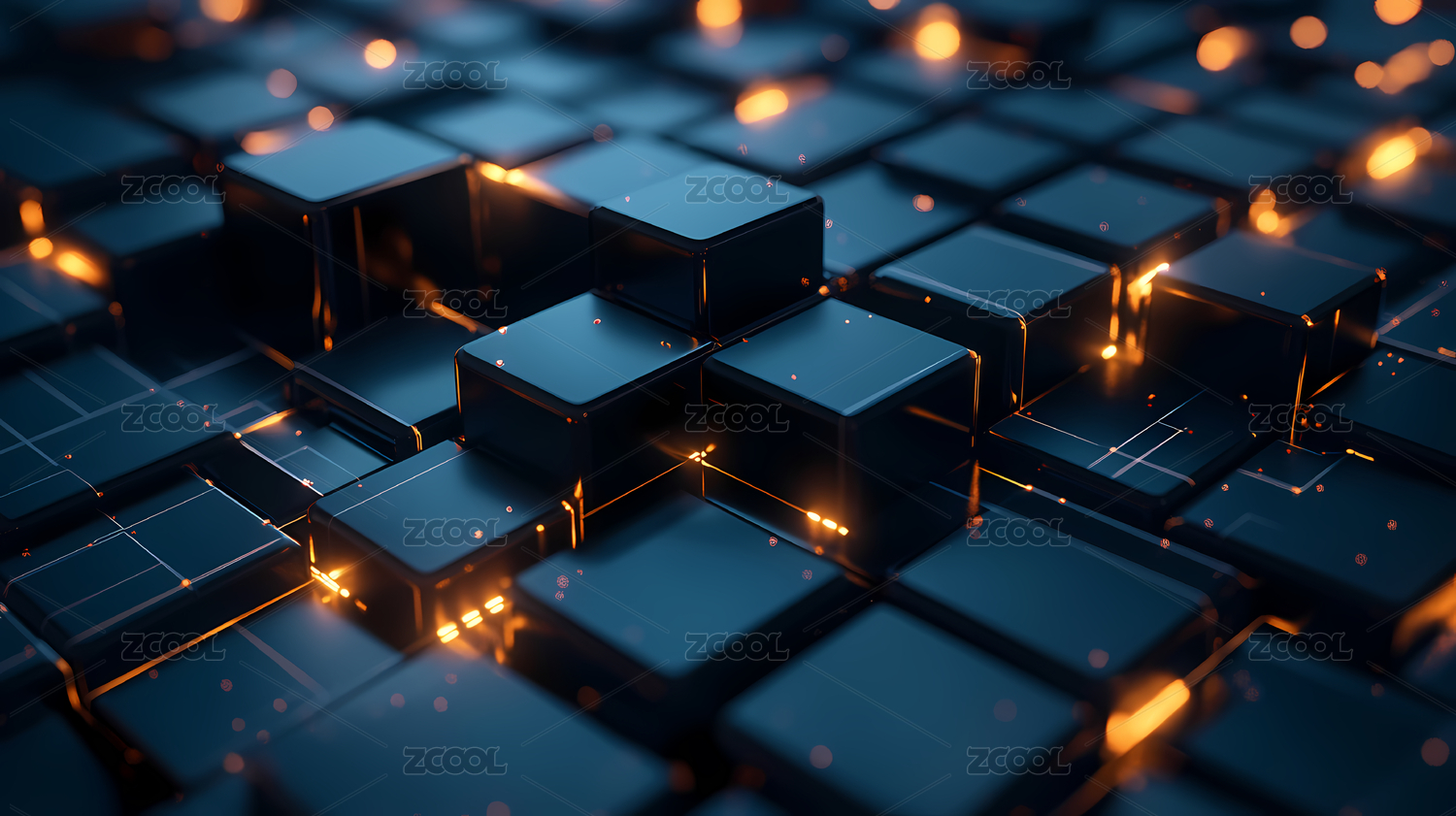 蓝色与金色几何立方体