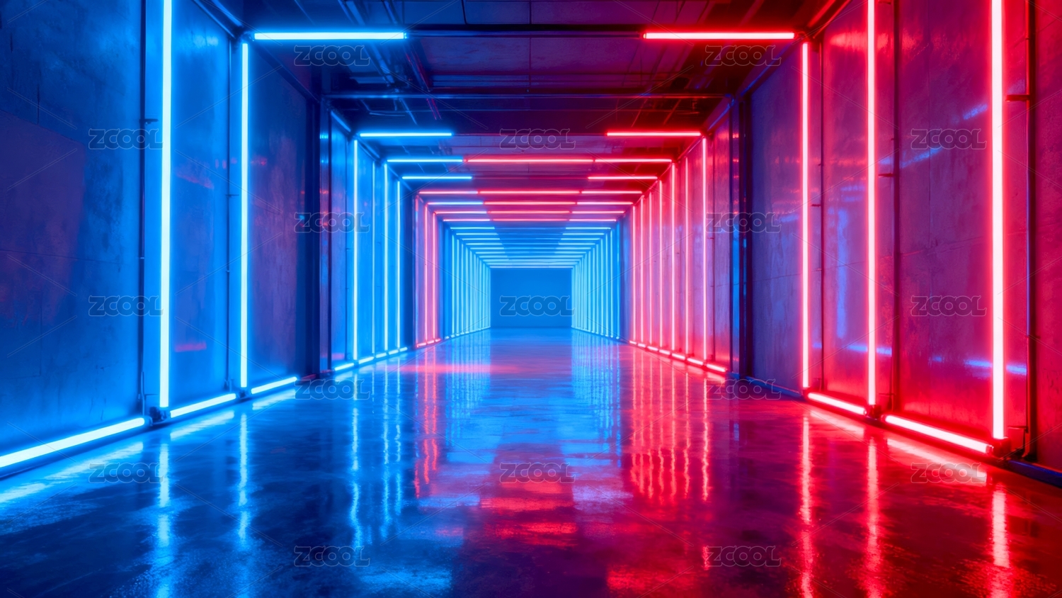 霓虹灯下的科幻走廊