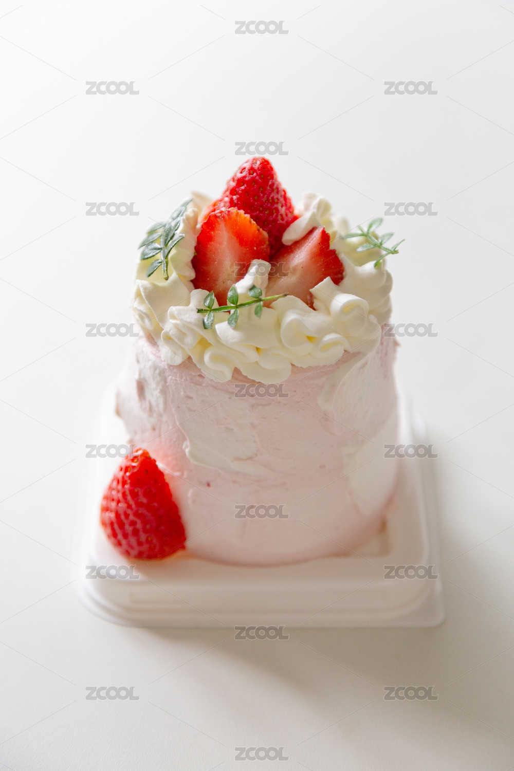 温暖的室内环境中铺满草莓的乳白色生日蛋糕