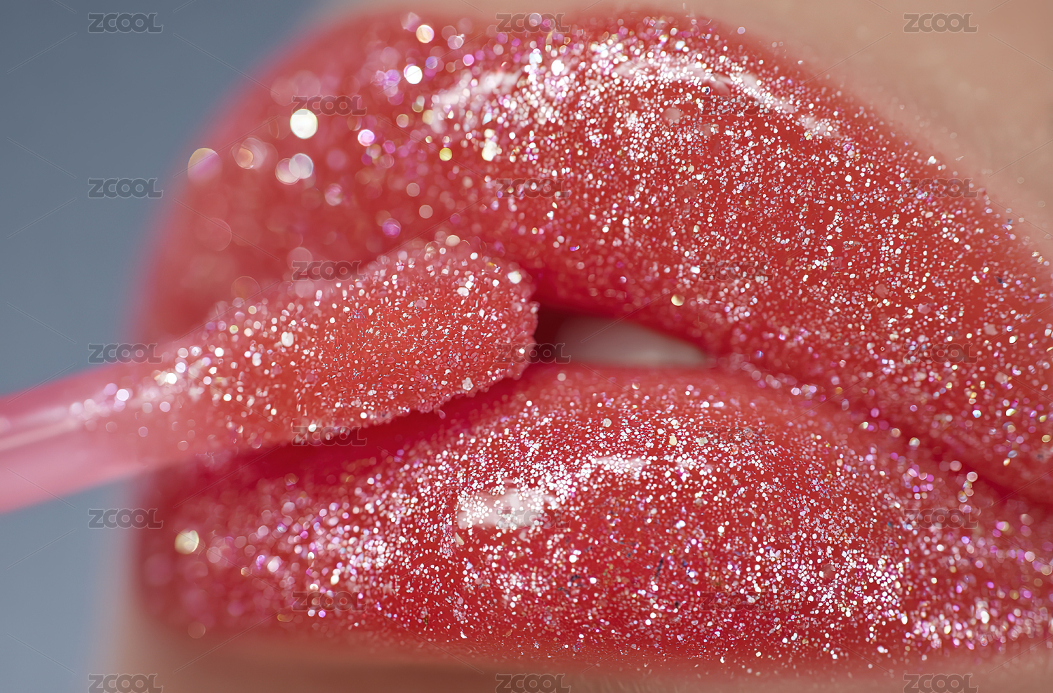 特写,红色,美,闪亮的,彩妆,美女,大特写,时尚,张着嘴,魅力
