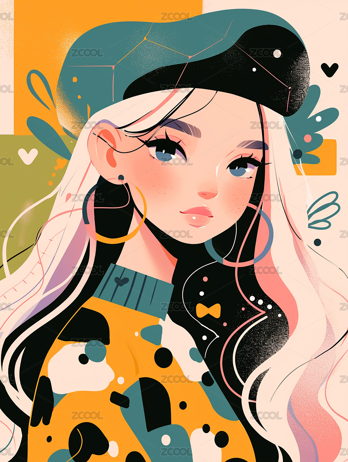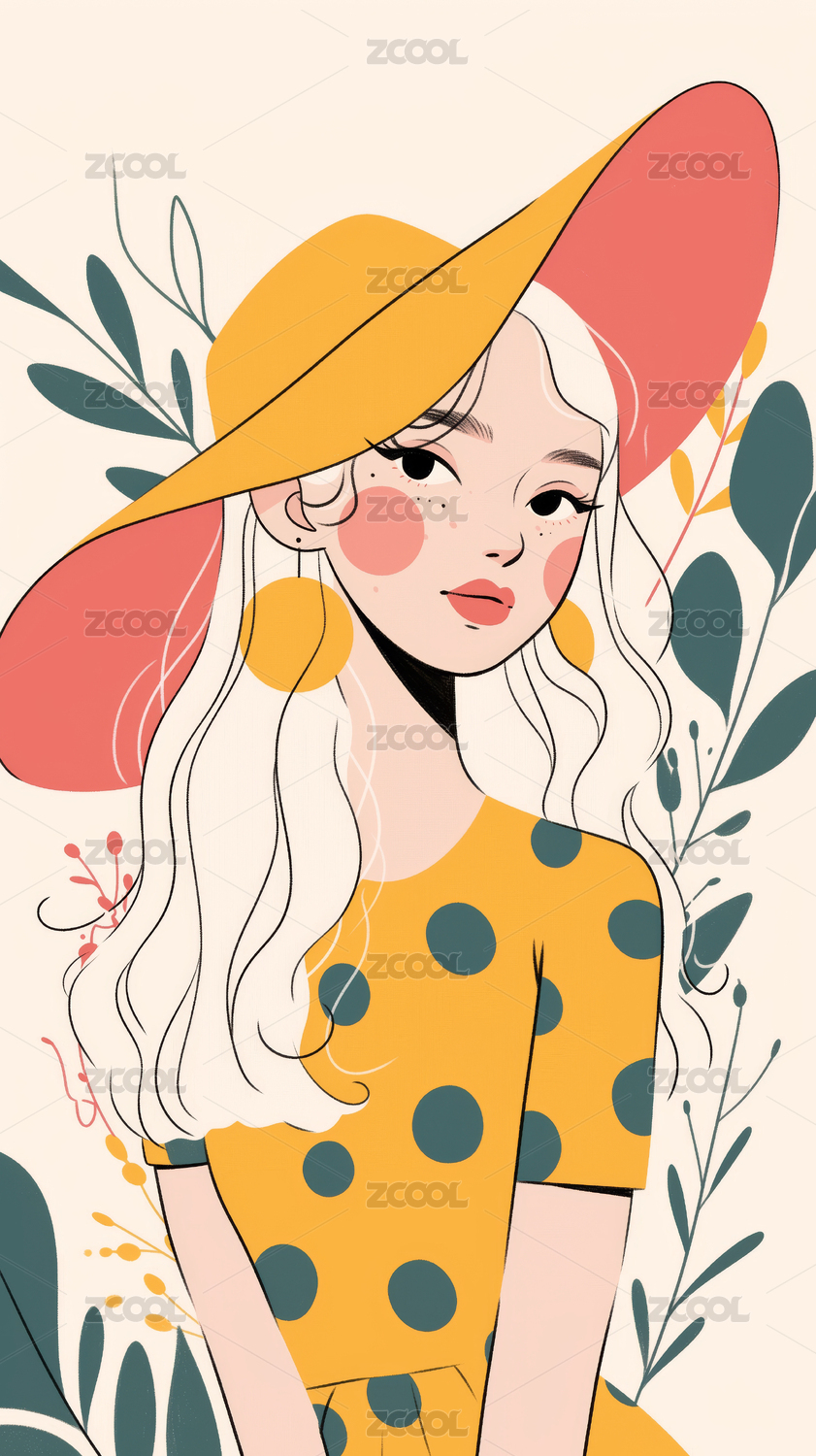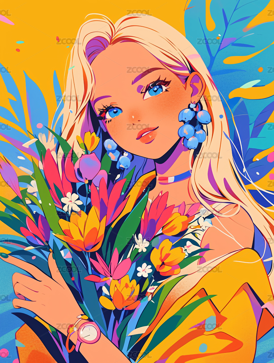 少女女性女孩拿着花母亲节妇女节女神节插画