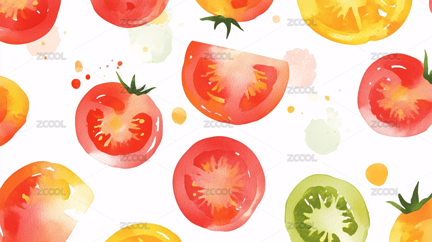 卡通手绘蔬菜番茄无缝拼接印花图案