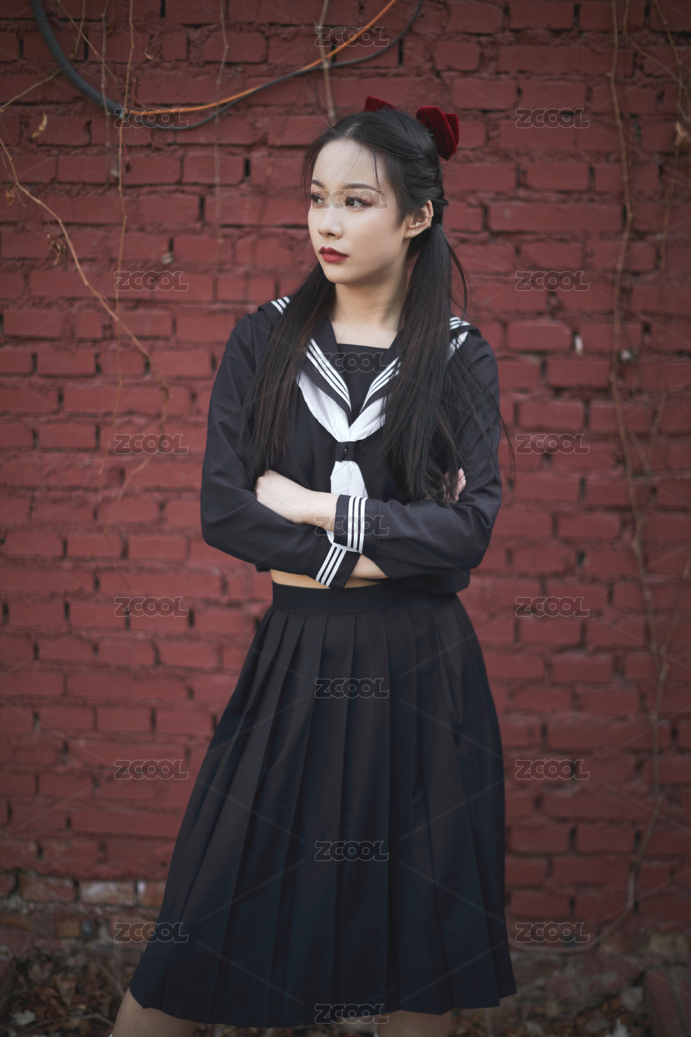 日系户外公园穿jk校服的少女