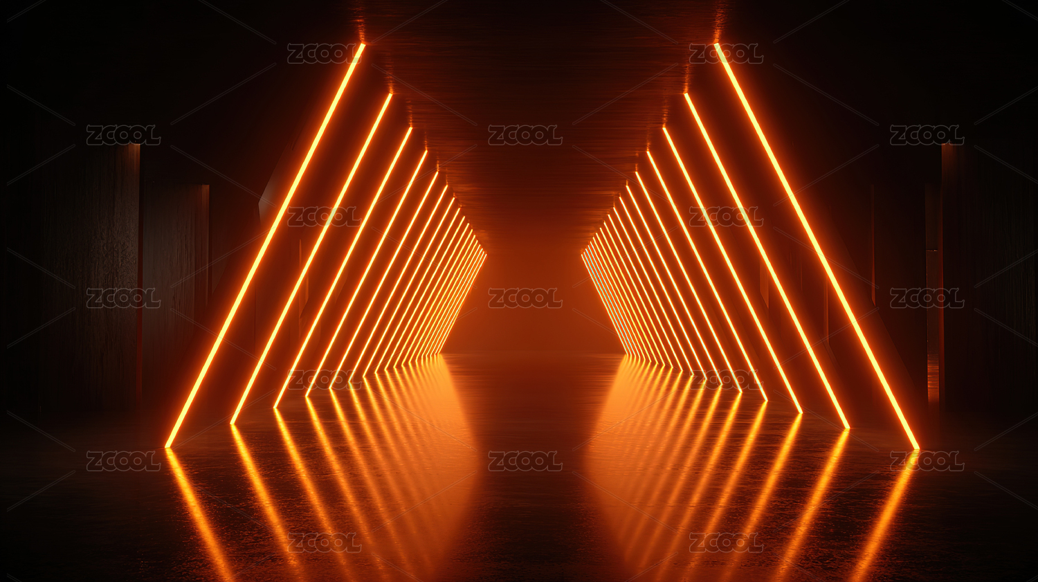 三维,灯光,霓虹灯,通道,发光的,发亮的,背景,插图,概念,线条