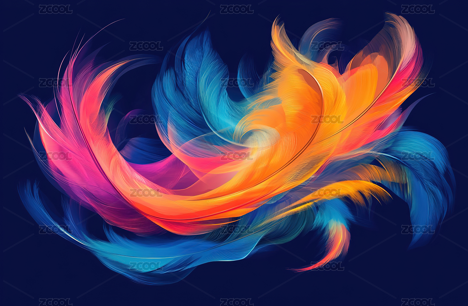 蓝橙羽毛抽象艺术图案