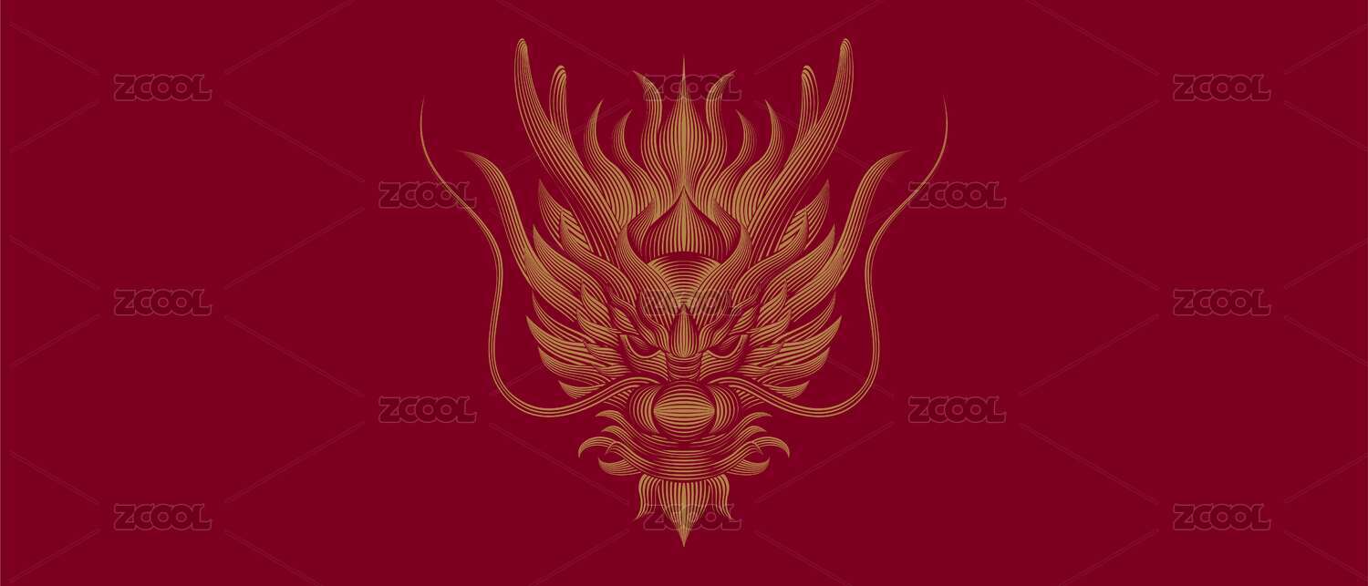 龙,龙年,生肖,烫金,东方,龙纹,插画,传统,春节,节日