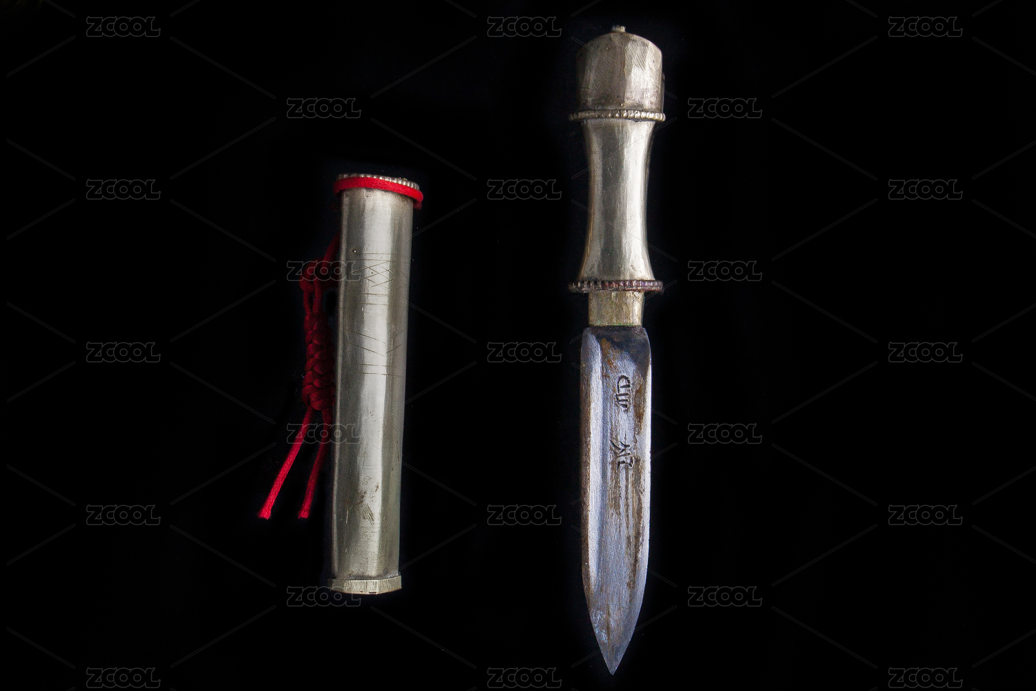 黑色背景中藏刀特写