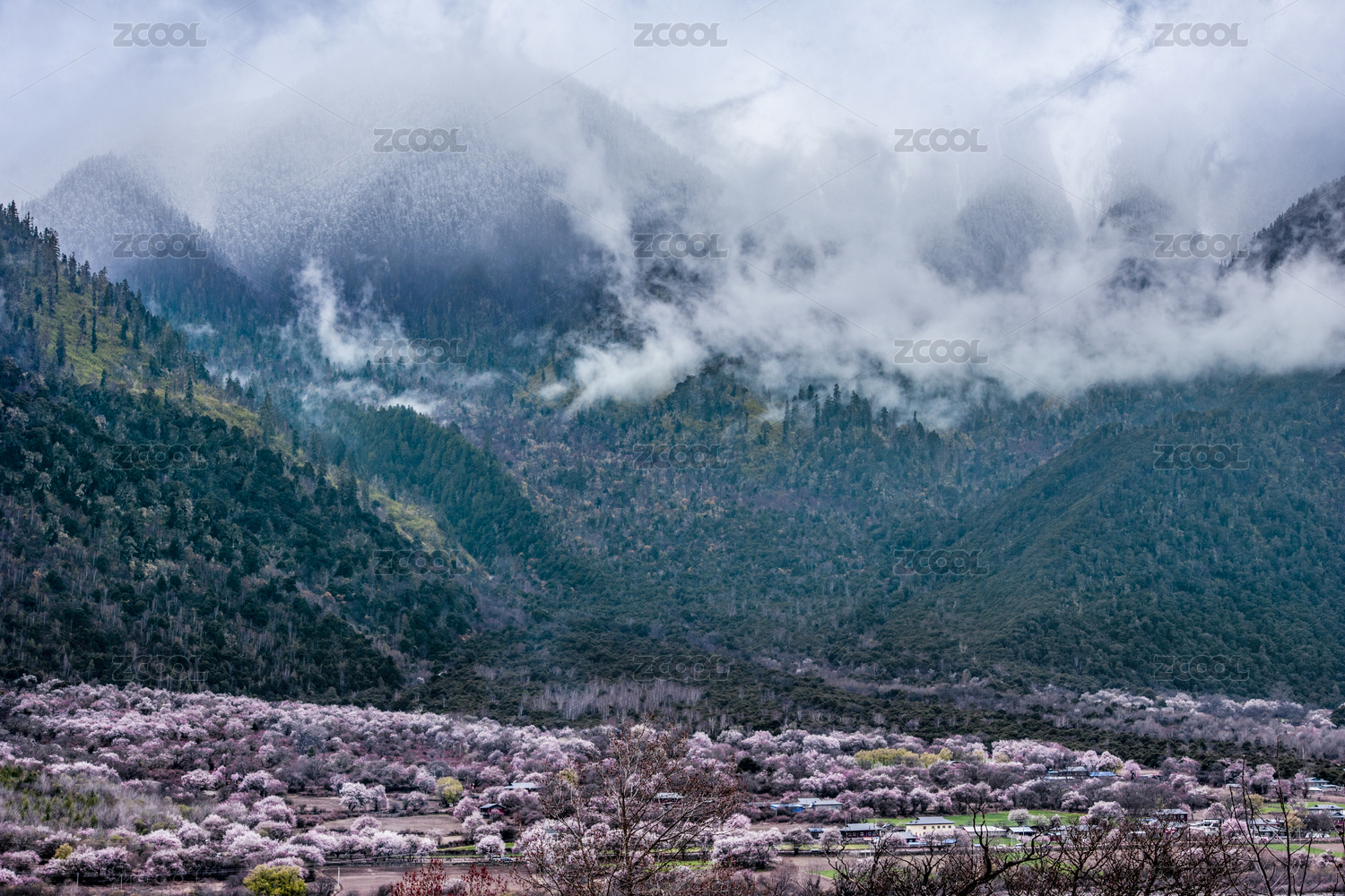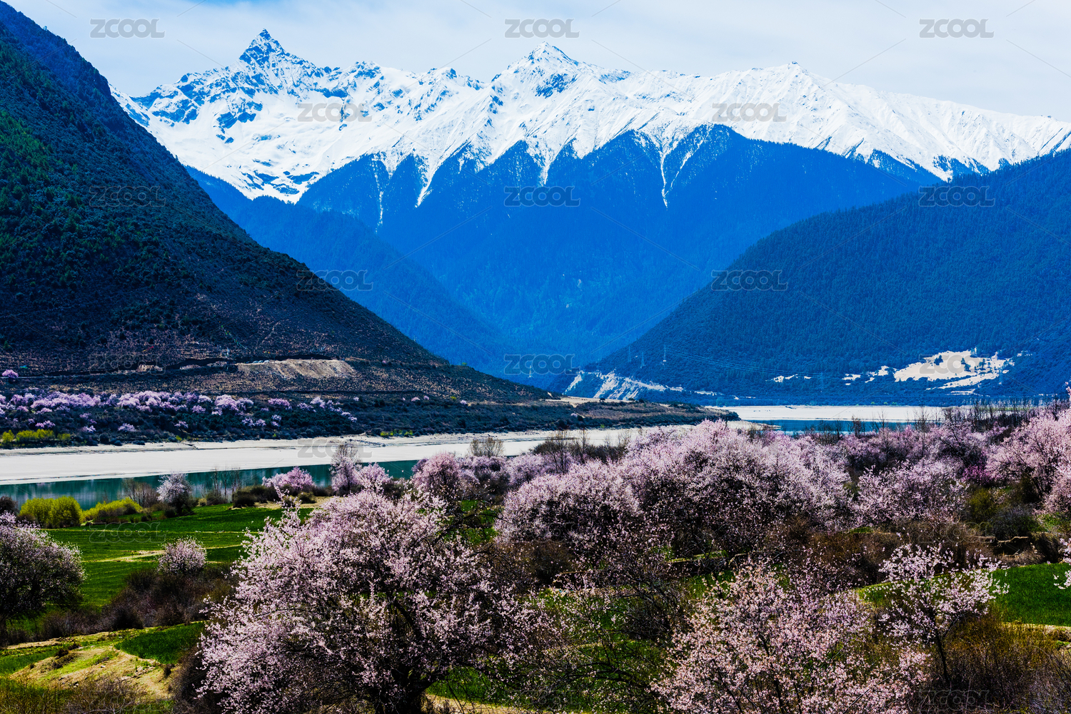桃花开在雪山下之中国西藏雅鲁藏布大峡谷
