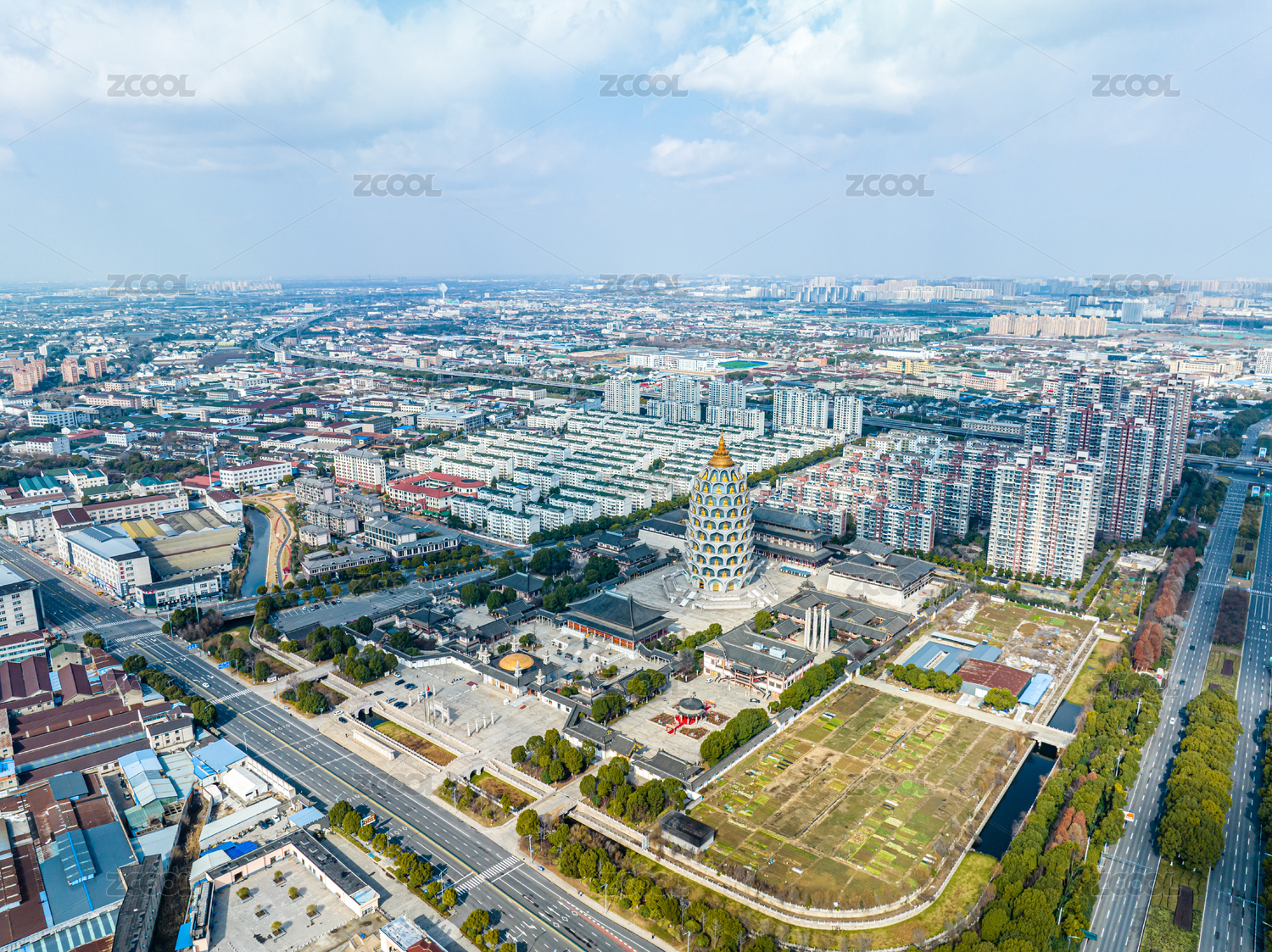 中国江苏航拍般若山常州宝林寺