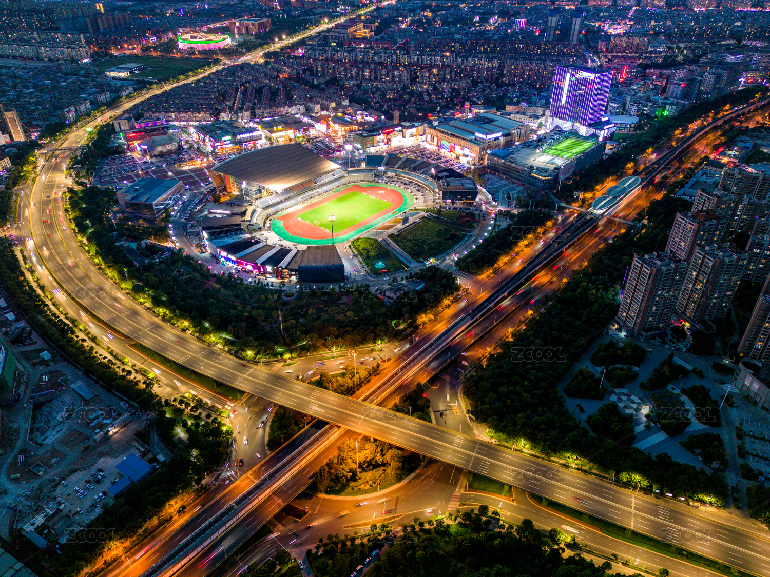 云南昆明新亚洲体育城 城市黄昏夜景风光高