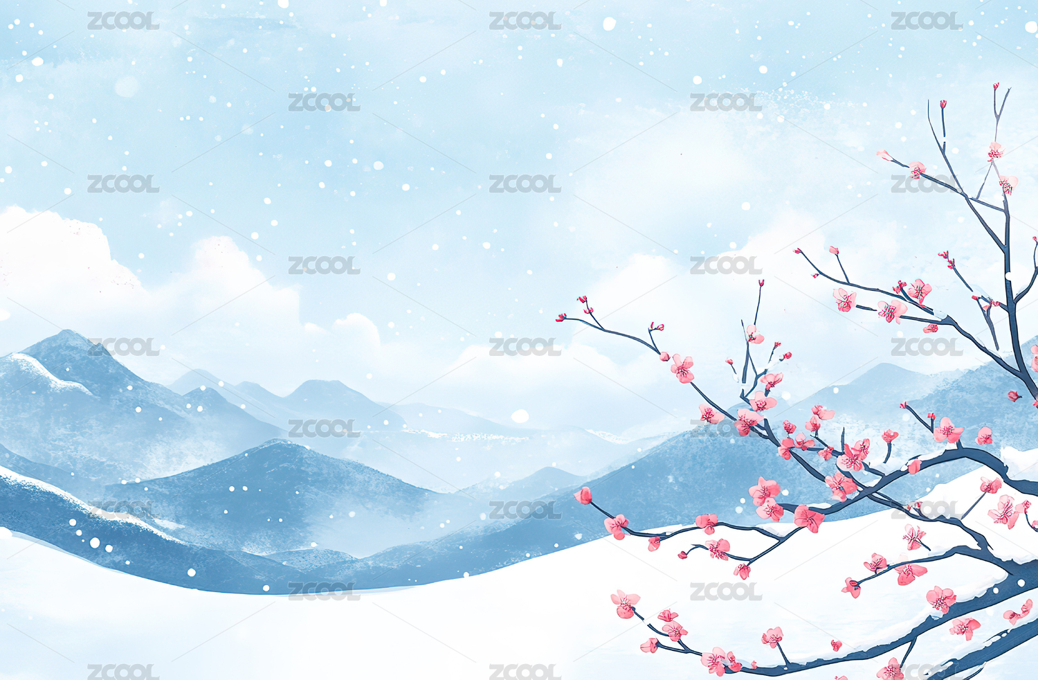 中国风抽象艺术入冬冬季雪山诗意水墨画