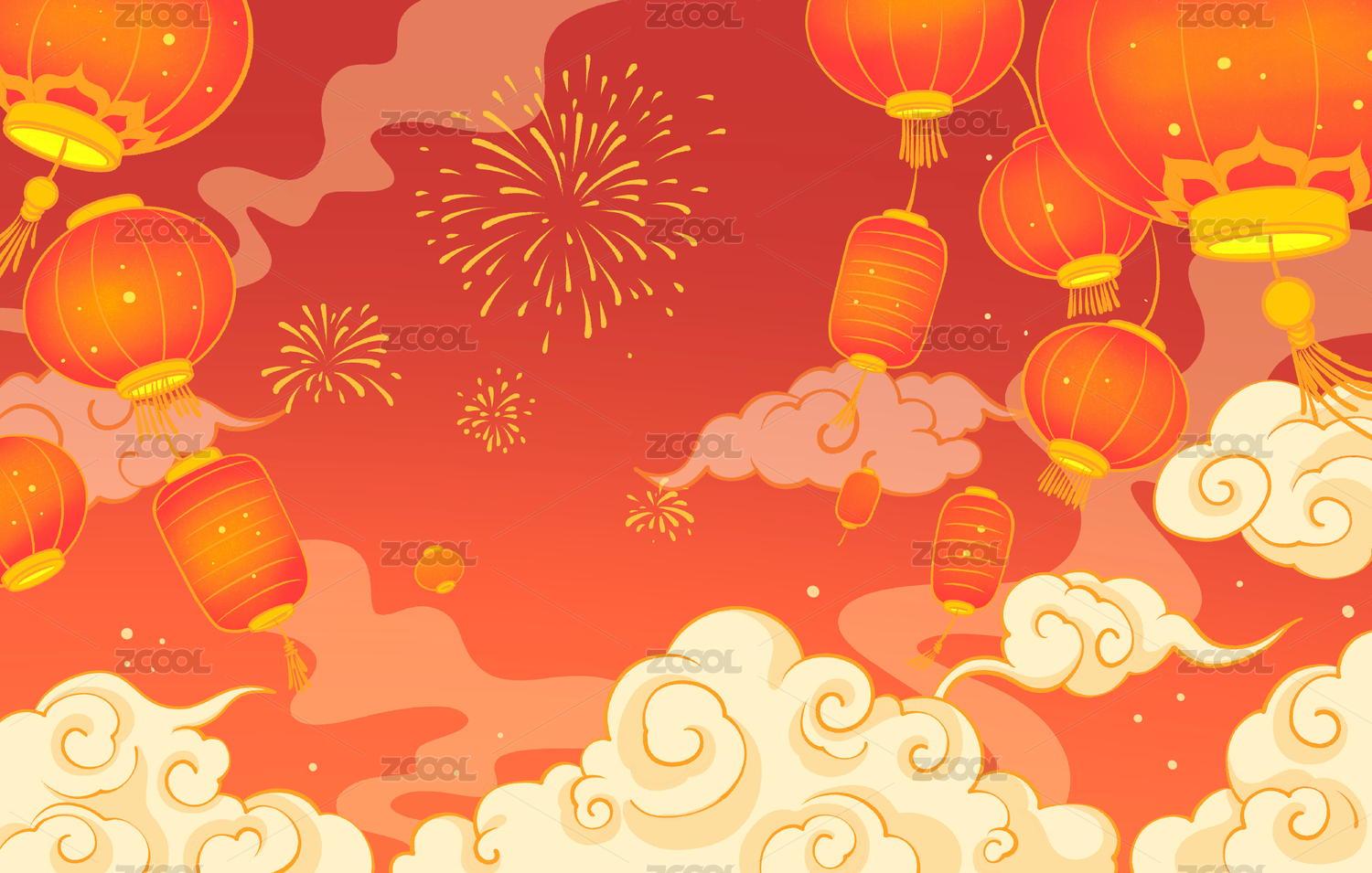 新年喜庆灯笼祥云烟花爆竹大气红色海报背景