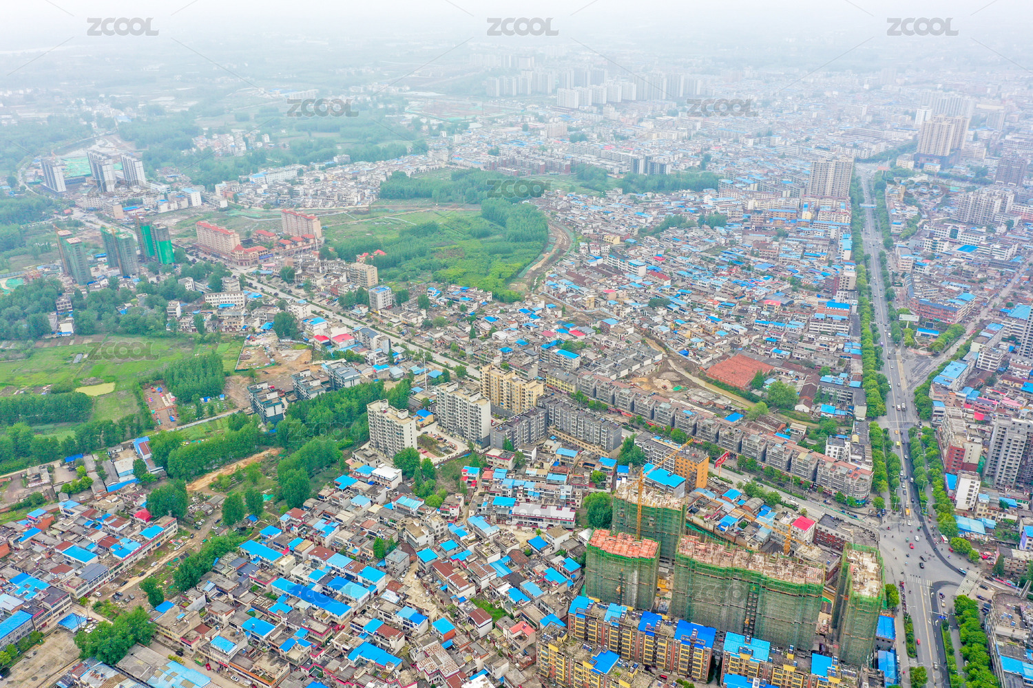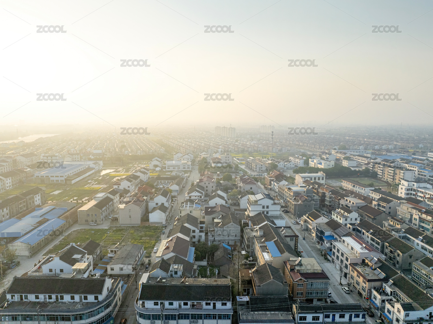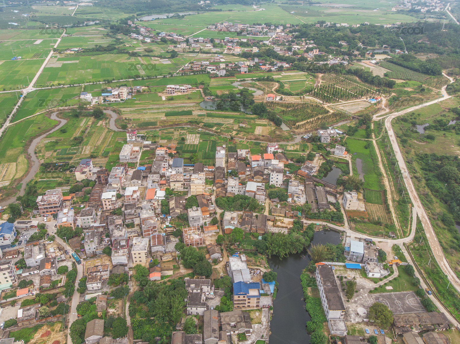航拍冬季清晨中国广东梅州兴宁城镇乡村发展