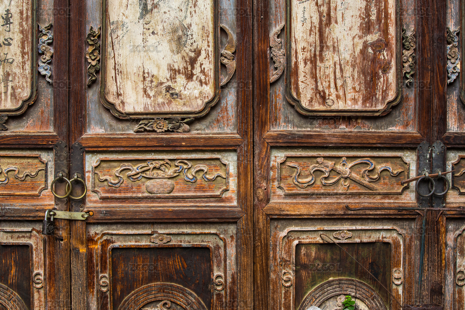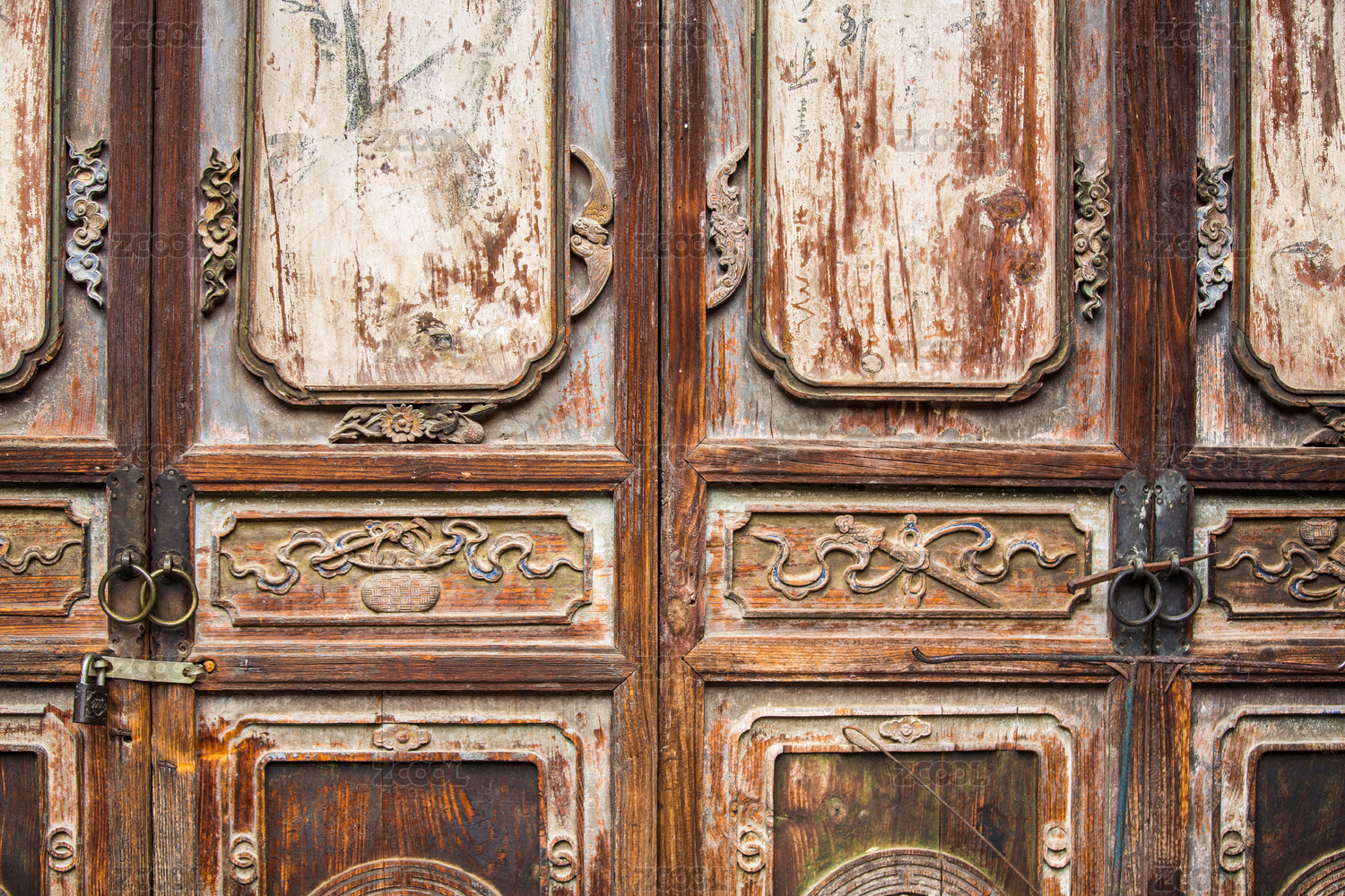 中国江苏苏州园林建筑房门上的雕刻花纹