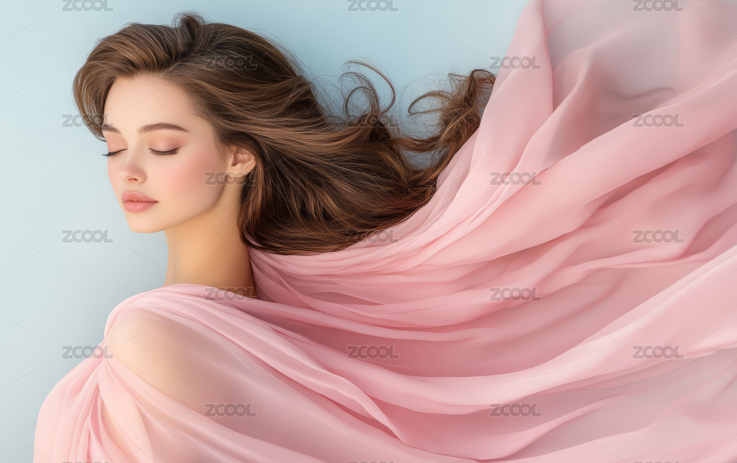长发飘逸的欧美年轻女性艺术形象